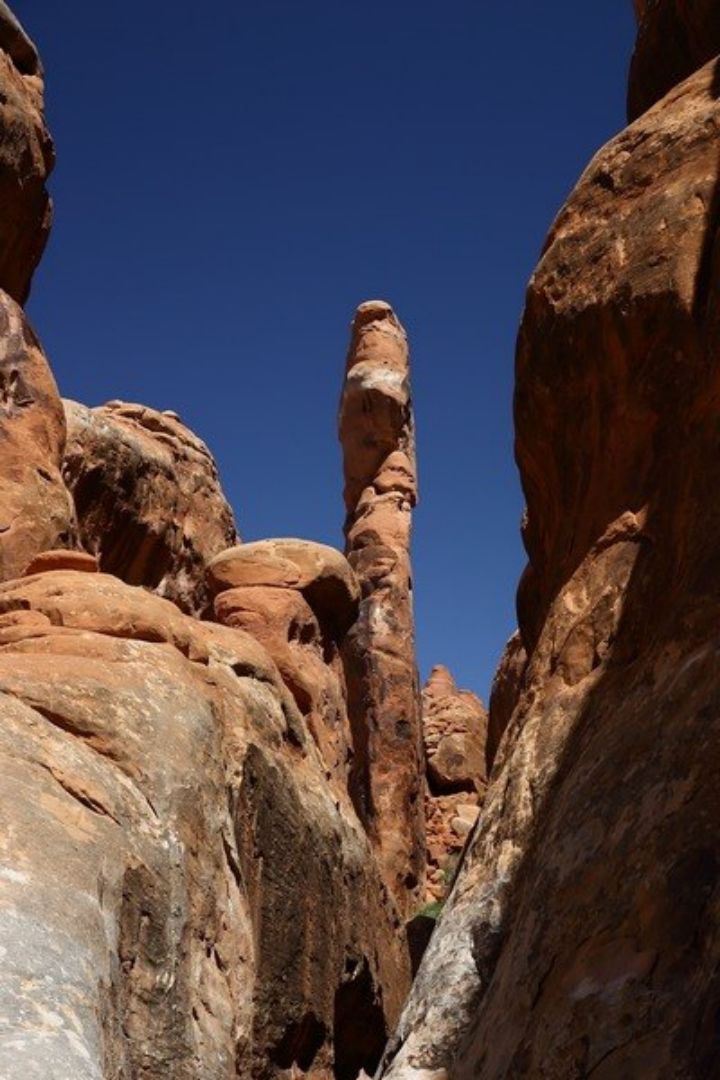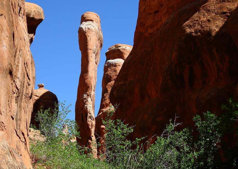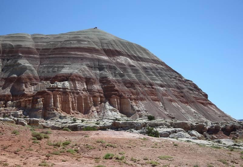 Nous quittons le campground de "Cathedral Valley" à 8h00 et descendons dans la vallée, la piste ne semble pas humide malgré les averses de la veille, nous allons faire de nombreux stops photos et aussi des petits "loop" pour nous rendre sur des points de vue remarquables. Nous avons autant de piste à faire qu'hier soit aux environs de soixante kilomètres et cette partie est meilleure que celle d'hier mais je tire ma révérence à Pascale qui conduit son véhicule de mains de maître sachant qu'elle a une garde au sol très réduite, chapeau, pour ma part je ne le ferai pas avec une telle auto. Le beau temps à l'air durable et il fait vite très chaud, nous sommes autour des trente degrés vers dix heures du matin. Nous sortons de la piste vers 11h30 en arrivant sur la Hwy 24, nous quittons Pascale et Alain qui retournent sur Torrey, nous nous reverrons dans trois jours, puis nous filons à Moab où nous avons un RV à 19h00. Les 200km seront vite avalés, nous y sommes vers 14h30, nous avons un petit moment pour nous reposer et nous en profitons pour nous trouver un lieu de bivouac pour cette nuit.