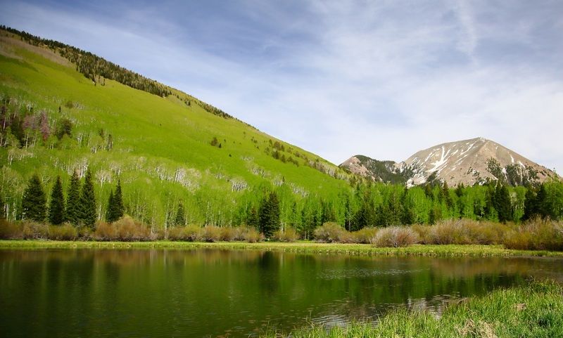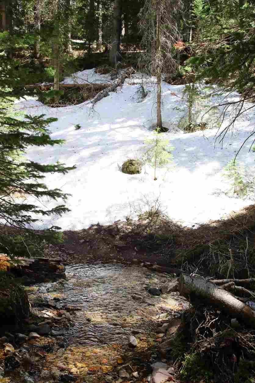 Comme il fait trop chaud nous partons en altitude sur les "Manti la Sal" et nous faisons un stop au "Warner Campground" c'est un "National Forest" situé dans un endroit très tranquille avec un petit lac et nous sommes à 2900 mètres. Il y a encore de la neige ici et cela nous fait tout drôle de nous retrouver au frais bien que la température soit très agréable. Nous déjeunons et partons ensuite faire une balade vers la "Burro Pass", 11km A/R, nous passons de nombreux névés et ruisseaux et pouvons voir des traces d'un ours noir. Nous rentrerons en fin de soirée, fatigués par cette balade mais contents d'être au calme et surtout sans chaleur.