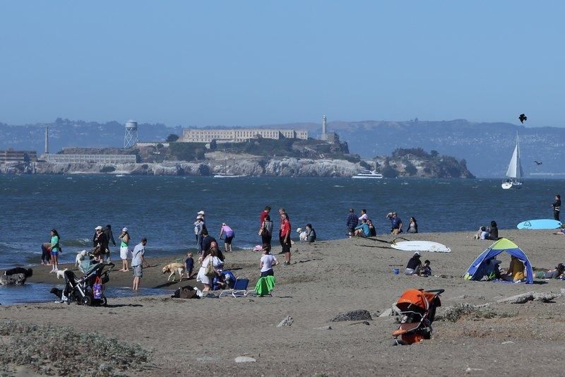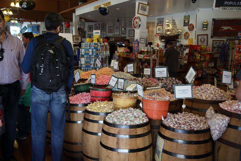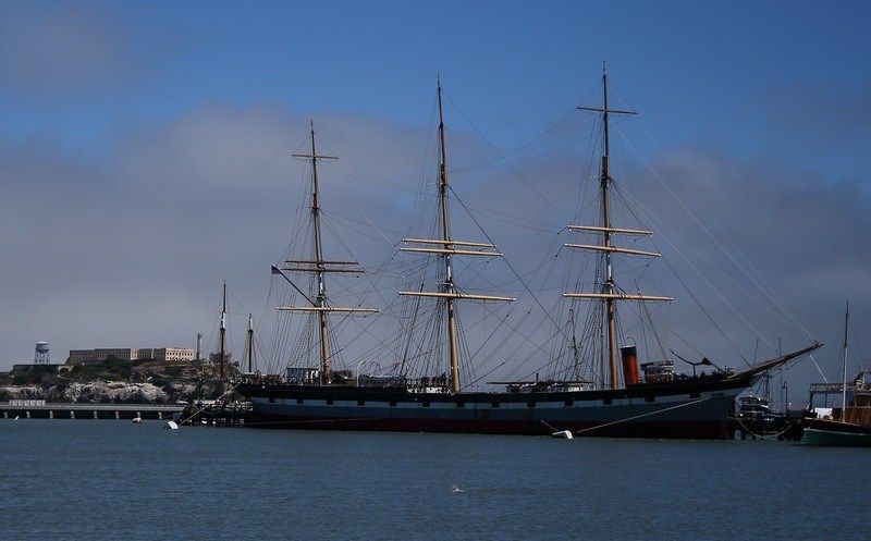 8h30, nous roulons vers SF sur la Hwy 120 jusque Manteca et ensuite droit sur Oakland sur la 580 puis traversée du bridge payant (6$) vers SF. Nous traversons tout le centre de SF par des petites rues et filons directement au parking de la Marina, juste en face d'Alcatraz. Nous laissons Hugo et partons nous promener vers le petit parc qui est juste à côté et allons jusqu'au "Fisherman Wharf", marché au poisson très réputé avec de nombreux touristes de tous pays et surtout de bons restaurants. Nous en choisissons un sympa et nous y faisons un bon repas de midi avant d'aller négocier pour l'achat d'un nouvel objectif afin de remplacer le 24/105 Canon qui a dix ans. Chez nous il est vendu entre 1000/1200€, ici à force de parlementer je fini par l'obtenir à 800$ soit moins de 600€, une très bonne affaire pour moi, je suis satisfait.
