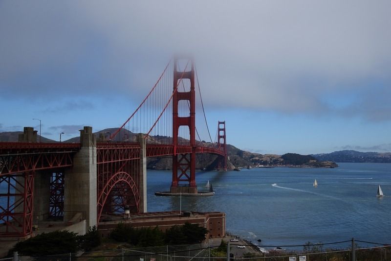 Le brouillard sera présent toute la journée et nous n'apercevrons que très peu le "Golden Gate Bridge", nous partons en soirée vers le parc qui est sous le bridge et nous nous poserons sur le parking à proximité pour essayer d'y passer la nuit, nous verrons bien si nous nous faisons virer! Soirée tranquille, repas et dodo mais vers 22h00 le ranger passe nous voir et nous explique qu'il fait une exception mais qu'il est interdit de rester à cet endroit et que demain soir cela sera son collègue et lui ne nous laissera pas dormir ici, nous verrons bien. Au moins cette nuit nous serons tranquilles alors au dodo et à demain!