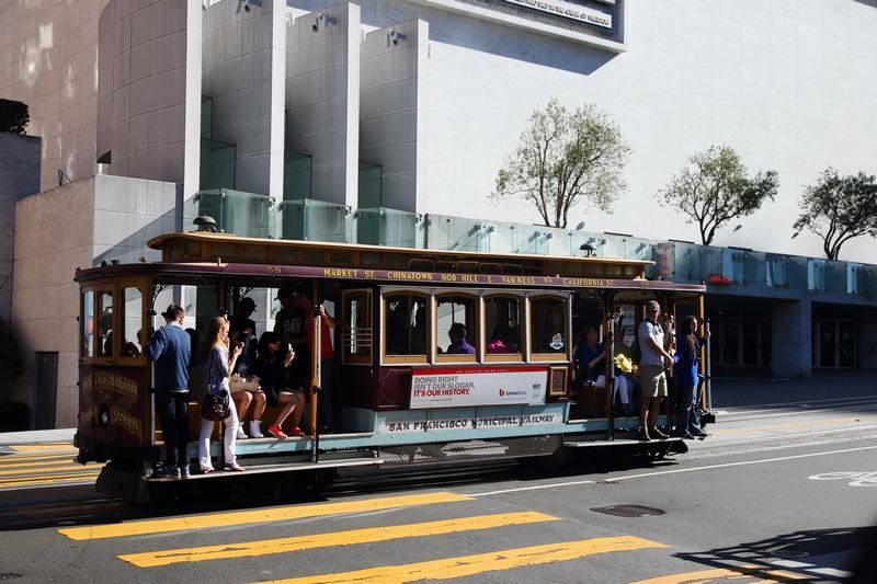 Après une très bonne nuit nous préparons pour une grande journée de balades vers les points intéressants de SF avec un grand soleil sans nuage et sans brouillard. Nous commençons par aller sur le "Golden Gate Bridge" avant qu'il n'y est trop de monde, erreur, il y a déjà beaucoup de monde mais il faut faire avec. Nous récupérons Hugo vers 10h00 et nous le laissons au parking de la Marina et partons en direction des différents Pier en bord d'océan. Les souvenirs remontent et nous rajeunissons de quelques années mais la foule est impressionnante. Après avoir fait le tour nous partons en direction de Lombard Street, il nous faut remonter par des escaliers, 380 marches avant d'atteindre la "Coit Tower", de là haut la vue est magnifique quasi sur 360°, nous nous régalons à faire des photos. Le temps étant très beau, pas un nuage ni brouillard sur la baie, ce qui ne nous est jamais arrivé ici, nous apprécions d'autant plus et au moins nous profitons de cette magnifique ville. Bon, nous y trouvons un peu de tout, des gens bizarres, des accoutrements pas possible, des tatouages partout, garçons comme filles ainsi que des piercing, pas vraiment joli tout cela mais c'est la mode alors! Nous passons beaucoup de temps à flâner dans ces rues pittoresques et la Lombard Street est encore loin, nous l'apercevons de loin mais nous n'irons pas ce jour car il nous faut rentrer voir Hugo, il se fait tard. Pas très loin de la Marina nous apercevons Hugo et il y a un camping-car à côté, c'est celui de nos amis voyageurs "Denis et Sarah Roux" avec leurs trois filles, surprise, ils ont vu Hugo et ils se sont garés à côté en nous attendant. Il faut dire que ce parking est le point de rendez-vous des gens en voyages et ce parking est gratuit et bien placé. Nous allons passer la soirée ensemble jusque assez tard pour faire des photos du "Golden Bridge" car nous allons bivouaquer au même endroit qu'hier soir en espérant ne pas nous faire virer en pleine nuit, nous verrons bien.