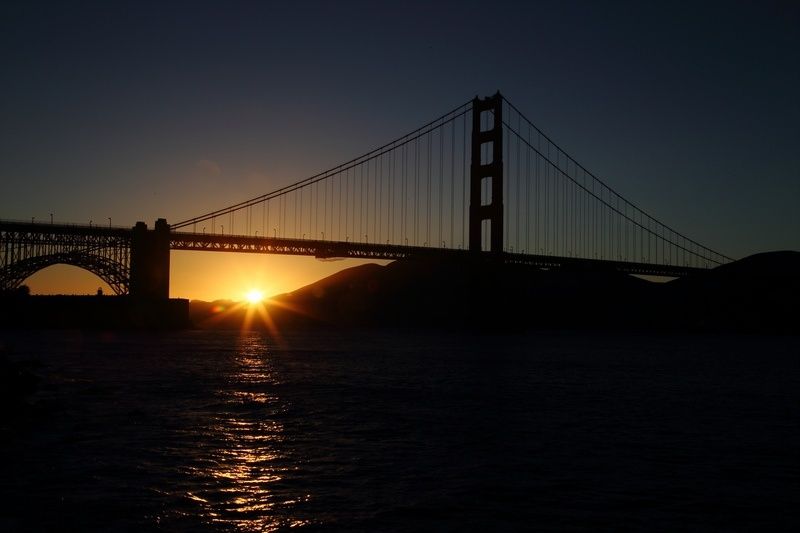 Personne ne sera venu nous déranger et nous avons fait une très bonne nuit, nous en avions besoin. Ce matin nos amis reste sur SF car ils doivent passer à l'Alliance Française qui n'ouvre que vers 11h00, nous et bien nous allons traverser le "Golden Gate Bridge" en direction du nord et faire les points de vues qui se trouvent dans le parc et en hauteur, de quoi découvrir de nouvelles perspectives sur ce fameux pont. Nous faisons un stop au bout du pont sur le parking aménagé à cet effet et nous attirons une nouvelle fois tous les regards, même les policiers viennent nous voir, nous commençons à vraiment saturer car c'est toute la journée que nous avons des sollicitations pour Hugo. Bref nous nous cachons au maximum et évitons de reprendre Hugo quand il y a du monde autour, c'est un comble. Nous profitons pleinement du soleil pour shooter le bridge et n'hésitons pas à faire de la marche pour avoir d'autres plans de prises. La route "scénic drive" qui nous conduit sur les hauteurs est vraiment très intéressante et nous offre de belles images sur le pont et sur SF, mais le temps se voile et nous ne finirons pas la journée sans brouillard. Sausalito étant une belle station balnéaire, nous y allons car c'est dans le secteur que nous devons retrouver la famille Roux mais avant nous visitons les "maisons flottantes" qui sont vraiment démentes, faites de bric et de broc à l'époque des hippies mais depuis il s'en est construites de bien belles et valant plus du million de $. Une est à vendre pour la modique somme de 1.580.000$!!!. Nous retrouvons nos amis et partons pour essayer d'assister au coucher du soleil depuis les hauteurs où nous étions ce matin, la brume enveloppe toute la baie, nous dînons en espérant que cela se découvre mais au contraire le brouillard est très épais, nous repartons vers 20h45 pour le bivouac du soir qui se fera sur le parking du Lycée Français de Sausalito, nous y serons tranquilles.