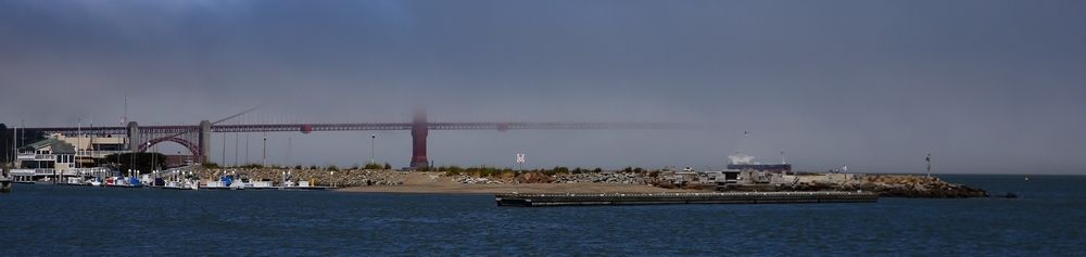 Goden Gate Bridge depuis la Marina et sous le brouillard