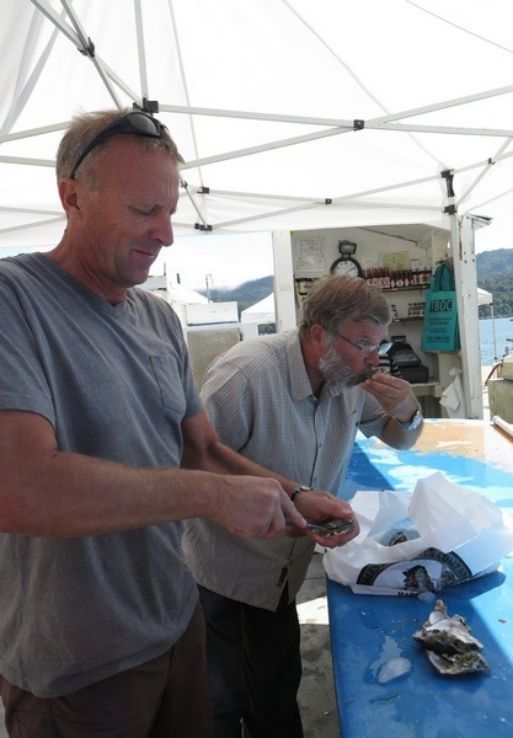 Personne n'est venu nous déranger cette nuit et nous avons bien dormi, maintenant nous partons à la recherche d'un garage pour faire les vidanges de nos véhicules. Nous trouverons assez facilement et il ne reste plus qu'à faire le travail. Tout se passe bien pour Denis, il ne fait que la vidange moteur. Pour nous il faut faire la boîte transfert, la boîte de vitesse et le moteur plus un graissage. Bon je pouvais me passer de faire l'ensemble compte tenu des données d'Iveco sur les vidanges à faire tous les 40000km mais je préfère assurer au moins nous serons tranquilles de ce côté. Le problème c'est que nos véhicules européens n'ont pas le standard des USA au niveau des écrous et donc ils vont me casser un bouchon en plastique qui ne sert qu'a voir le niveau d'huile!!!! Le bouchon de remplissage étant au dessus, je les pistes de près pour la suite pour ne pas avoir d'autres surprises, ils me remplacent le bouchon mais je vais le surveiller tous les jours. Nous reprenons notre route vers le nord et quittons les stations balnéaires par la Hwy N°1, plusieurs arrêts seront nécessaires car il y a de nombreux oiseaux et des otaries sur les lagunes que nous longeons. Un stop ravitaillement dans la petite ville de Point Reyes proche d'Olema et nous repartons toujours plus au nord. Denis ayant envie de manger des huitres nous nous faisons un nouveau stop en bord d'océan et trouvons de quoi satisfaire nos envies, il est 16h00 quand nous dégustons les huîtres de Point Reyes, un vrai régal surtout que nous avions mangé un esquimau avec du caramel un peu avant, à l'américaine en quelques sortes. Maintenant il faut se trouver un coin de bivouac pour la nuit et Denis à la bonne idée de faire un stop sur une voie qui mène dans des propriétés privées mais nous pouvons nous garer juste avant et nous sommes devant l'océan en bord d'une lagune, vraiment il y a pire, il nous faut simplement ne pas nous faire virer de cet endroit magique. Vous saurez tout demain.