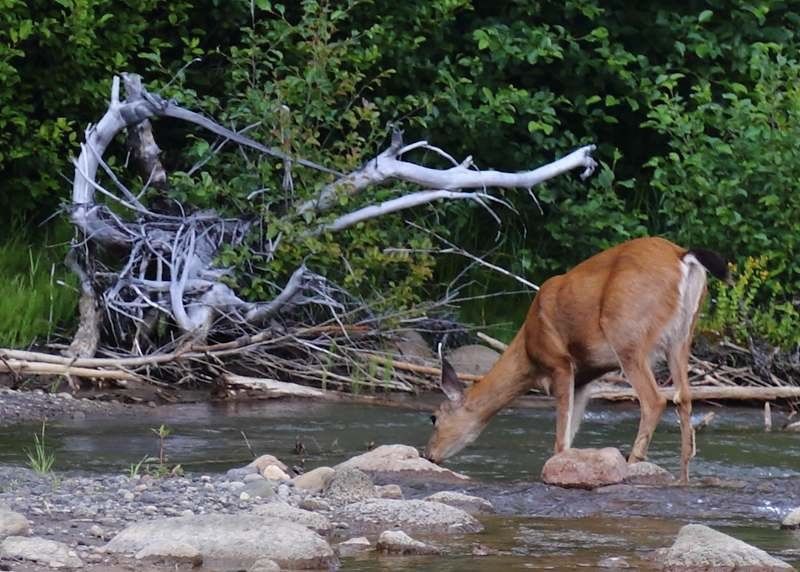 Quand on pêche aux USA on y fait souvent de belles rencontres, l'ours à Lee Vining et ce soir deux biches viennent au bord de la rivière, je ne les dérange pas et elles me regardent confiantes, c'est beau, Françoise les voit depuis Hugo, que du bonheur.