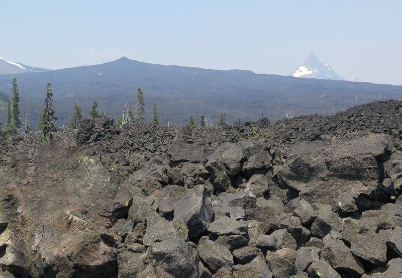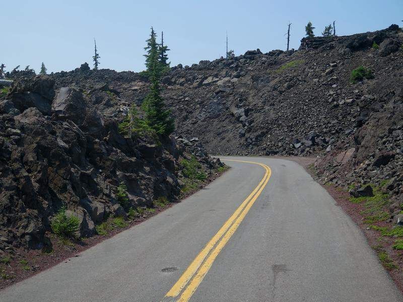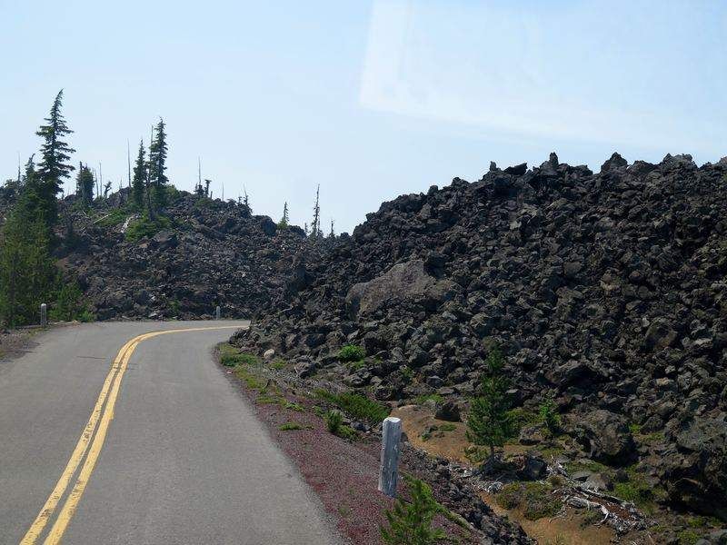 La nuit fût calme comparée à celle de la veille et c'est en forme que nous partons vers le sud, direction des "Proxi Falls" que nous ferons jeudi matin. Pour le moment nous avons 240 kilomètres à faire par une grande ligne droite et ensuite une route de montagne magnifique qui passe dans des coulées de lave impressionnantes de par leurs hauteurs mais aussi leurs longueurs. La descente va être très sinueuse et dans un virage nous voyons deux motards dont un à glissé sur le côté et sa moto est dans le fossé deux mètres en contrebas. Je stoppe et leur demande si tout va bien et s'ils ont besoin d'aide. Ils me disent que oui et nous essayons de soulever la tonne de cette moto mais c'est impossible de la remonter à la main. Je leur dis que j'aie une sangle et que je peux tirer avec Hugo. Nous sanglons la moto, je tire doucement et nous sortons l'engin qui reprend pied sur la route. Les dégâts ne sont pas importants, problème de frein uniquement, comme la descente était longue, l'utilisation des freins a entraîné une surchauffe et plus de frein dans le virage, le motard se sort de cet accident sans aucun problème, la moto (Harley) c'est moins grave! Remerciements d'usage et nous reprenons notre descente jusque un campground en bordure de rivière (Lost Creek), nous y passerons deux nuits. Il est 14h30 et nous avons très faim, un bouchon sur la route dû à un accident de voiture et le problème du motard nous ont sérieusement retardés, heureusement que nous ne sommes pas pressés.