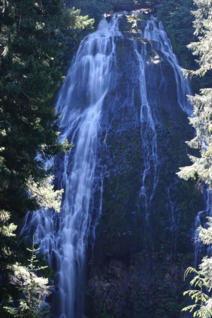 Pas de feu d'artifice pour nous aujourd'hui, nous avons notre bouquet de beauté tous les jours et cela nous suffit bien. Ce matin nous partons vers 8h00 car nous allons devoir traverser de grandes cités et notamment Portland, nous quittons le campground sous le brouillard mais très vite le soleil arrive dès que nous quittons la côte pour aller vers l'Est. Comme prévu, la route est longue et nous devons faire de nombreux stops avec tous les feux tricolores que nous croisons. La traversée de Portland se passe pas trop mal et nous sommes vite sur la petite Hwy 30 qui nous conduire sur des "falls" assez belles mais il y a la grande foule et pour trouver à se garer ce n'est pas simple, nous réussissons à faire quelques photos tout de même. Il se fait tard (13h00) et nous n'avons pas déjeuné mais il nous faut trouver un coin pour dormir ce soir et là aussi pas facile mais nous finissons par trouver même si ce n'est pas trop au calme, pour une fois! Il est 14h30 quand nous terminons la vaisselle et ne sommes pas motivés pour faire autre chose, nous restons donc dans Hugo, c'est le seul endroit où nous avons de l'ombre.