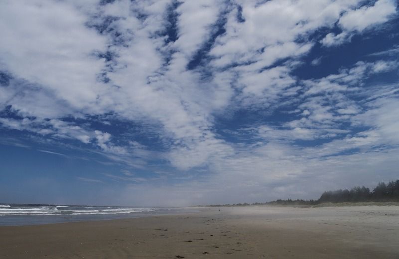Nous rentrons au campground en soirée et après nous être installés, nous partons en balade sur la plage, le soleil est revenu et nous avons chaud. Nous dînerons à l'intérieur car maintenant le brouillard est de nouveau tombé et la température extérieur est repassée à 12°. Nous espérions pouvoir assister au coucher de soleil mais après avoir fait une tentative en nous dirigeant vers la plage, nous constatons que le soleil est loin derrière le brouillard, retour au chaud et nous nous préparons pour la nuit, demain il fera certainement meilleur!