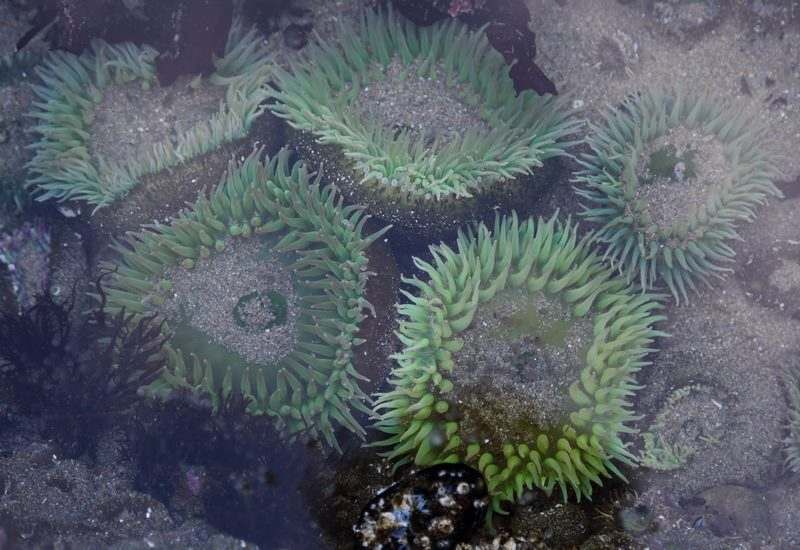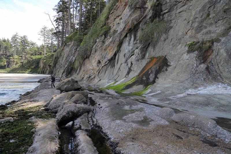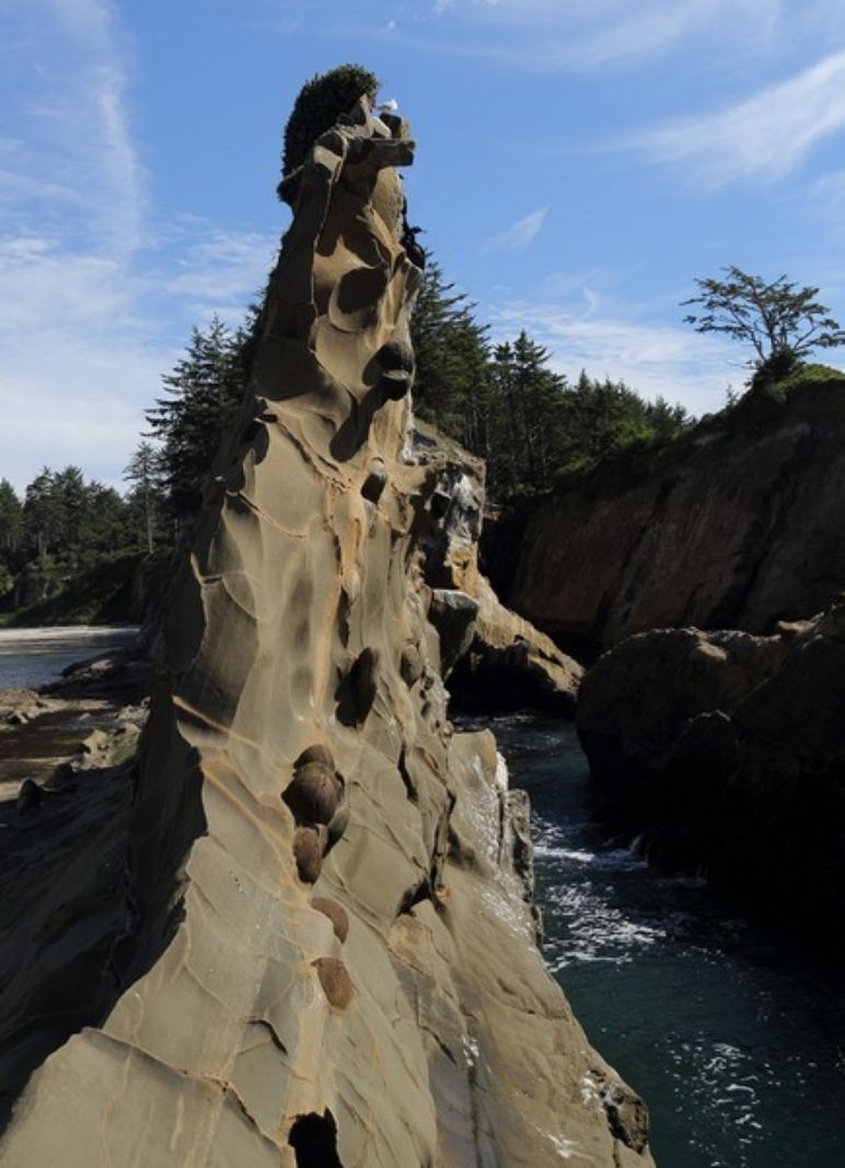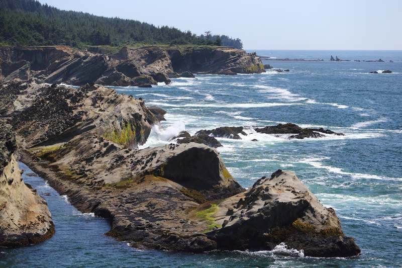 Nous descendons la côte vers Coos Bay et avons la chance d'avoir un temps correct, peu de kilomètre à faire, environ 80. Nous faisons quelques arrêts photos en cours de route et arrivons vers 11h30 dans un petit parc en bordure d'océan. La plage n'est pas loin aussi nous y allons avant de déjeuner, elle est immense et nous sommes quasiment les seuls sur le sable, faut dire que la température n'est que de 18° et pour la bronzette c'est un poil juste! Nous repérons un endroit où nous irons faire une balade cet après-midi, cela semble attrayant aussi nous rentrons pour nous restaurer un peu avant de revenir sur la plage et faire la balade que nous avions vue. Nous découvrons un endroit très sympa et y regardant de près, nous voyons des anémones de mer dans les trous d'eau, des formes de rochers assez proches de celles rencontrées dans les canyons et aussi des oiseaux. L'endroit est joli et le soleil nous aide bien pour apprécier ces lieux. Nous serons de retour au campground vers 17h30 et je prépare le BBQ pour cuire des filets de sole pour ce soir et des côtes de porc pour demain. La chaleur du feu nous fait du bien, il ne fait plus que 14° dehors et nous dînons en extérieur face au feu, c'est bon et chaud à la fois.