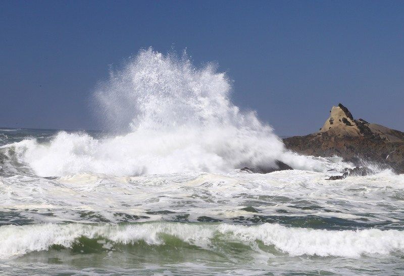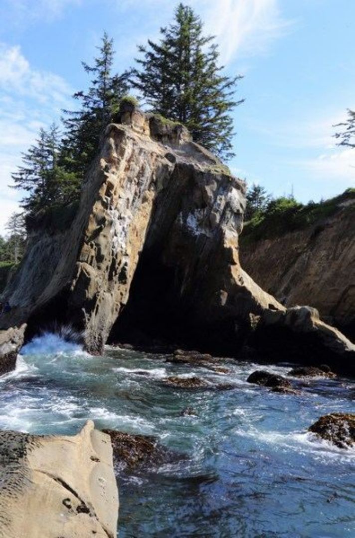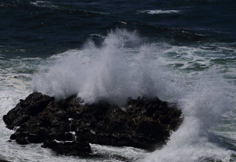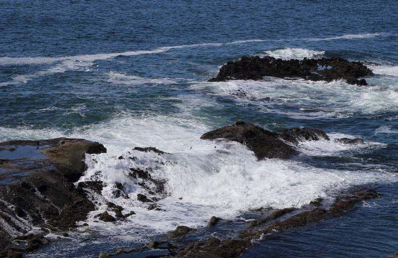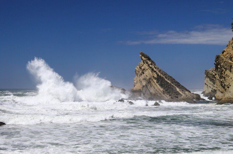 6h00, il commence à pleuvoir assez fortement et ça et bien ce n'était pas prévu, il devait faire grand beau ce jour. Nous nous préparons et allons aller faire les courses car il nous faut du ravitaillement, cela va laisser le temps au soleil de revenir. Nous trouvons un MacDo et en profitons pour aller sur nos messageries et ensuite, pendant que Françoise va parcourir les allées du supermarché, j'en profite pour me faire couper les cheveux qui en ont bien besoin car je n'ai pas vu de coiffeur depuis le 26 avril à Montréal, presque trois mois! Nous déjeunons sur un parking face à l'océan et sous un soleil éclatant, le temps change vite ici, il y a du bleu partout. Après le déjeuner nous partons faire une belle balade à pied toujours le long de l'océan et admirons les grosse vagues qui viennent se fracasser sur les rochers, cela remue plus qu'hier. Nous allons marcher de nouveau presque trois heures et c'est encore fourbus que nous rentrons chercher Hugo et rejoignons notre emplacement au campground. Nous sommes accueillis par un couple de Californien (Yvonne et MarK), Yvonne parle parfaitement le français et sans accent, nous échangeons un bon moment avec eux avant de continuer de nous installer pour la soirée. Nous sommes toujours au soleil et ce soir je place Hugo de façon à avoir la lumière dans la porte, il fait bon. Soirée tranquille, tri des photos et MAJ du site, ce soir nous dégustons du crabe de l'Oregon, humm!