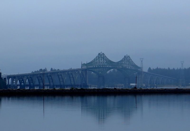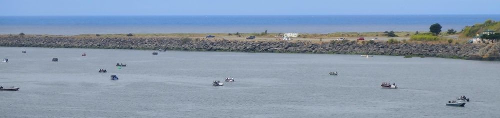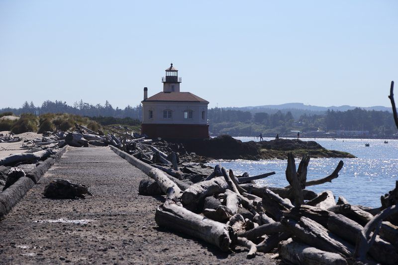 Ce matin c'est grâce matinée, nous nous levons vers 8h30, nous nous sentons de plus en plus en vacances et c'est peu dire. Nous sommes prêts vers 10h00 et nous partons avec Hugo sur des sites assez éloignés les uns des autres, le temps est au plus beau mais il faut toujours faire avec le vent. Nous commençons par le phare de Bandon et la jetée où se trouve des centaines de souches d'arbres aussi bien sur la plage que sur les bords de la rivière "Coquille". Mieux vaut les voir ici que dans l'océan où la rencontre avec les bateaux doit faire de sérieux dégâts sur les coques. Nous regardons les pêcheurs relever leurs casiers à crabes, c'est la pleine saison ici et nous en profitons également.
