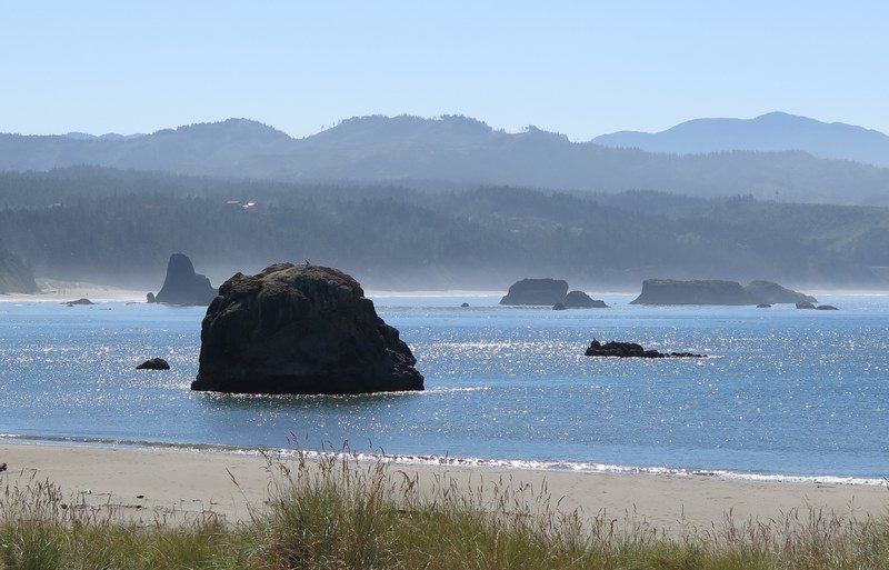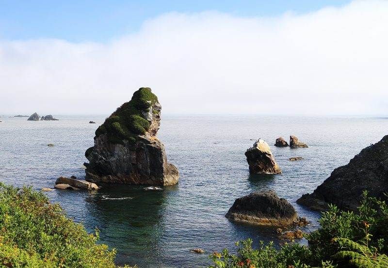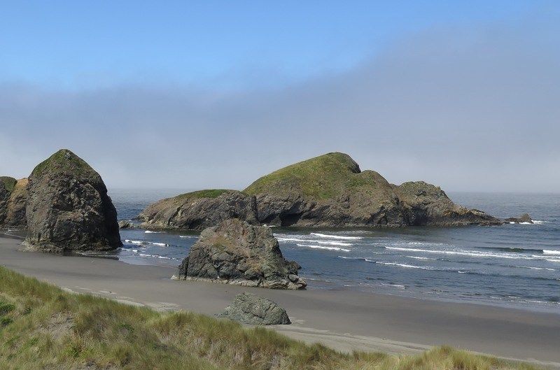 Comme prévu la nuit fût très calme et c'est vers 8h00 que nous émergeons pour prendre le petit déjeuner. Nous reprenons la route en sens inverse d'hier et partons en direction de Brookings qui est encore en Oregon, au loin le temps semble couvert, tout du moins le brouillard semble venir de l'océan. Pour le moment le soleil est avec nous mais cela ne va pas durer et nous ne nous plaignons pas d'avoir eu une semaine de beau sur la côte. Nous repassons devant la "Humbug Beach" et filons vers le "Beach State Park" de Brookins où nous serons vers 11h30 et nous nous installons au campground en bordure d'océan. Il ne fait pas chaud,12°, et le soleil est remplacé par le brouillard, dommage car l'endroit semble joli. Nous allons en profiter pour aller faire la "laundry" dans l'après midi et trouver du WiFi.