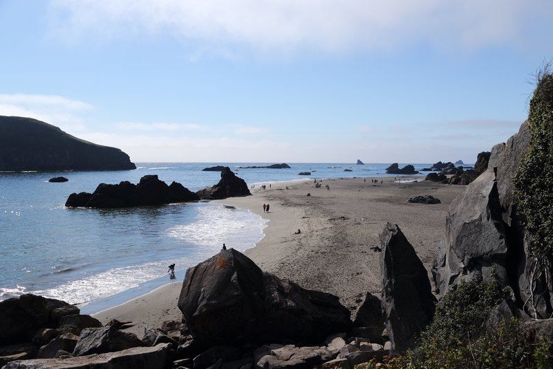 Nous quittons notre emplacement sous un généreux soleil et nous allons trouver le brouillard sur la côte. Un petit stop à Brookings pour faire quelques courses puis un autre devant un MacDo pour le Wifi et nous reprenons la route vers le sud. Nous sommes très vite de nouveau en Californie et passons un contrôle sanitaire dès l'entrée, il est interdit de venir avec des fruits et des légumes, nous en avons pour quelques jours mais je fais celui qui ne comprend rien et nous passons sans problème. Nous longeons la côte en direction de Eureka et nous nous mettons en chasse d'un endroit pour passer la nuit, et bien ce n'est pas simple, tous les "States Park" sont pleins, nous continuons et trouvons un parking qui fera l'affaire pour une nuit, le soleil commence à percer, il devrait faire bon pour la fin de journée.