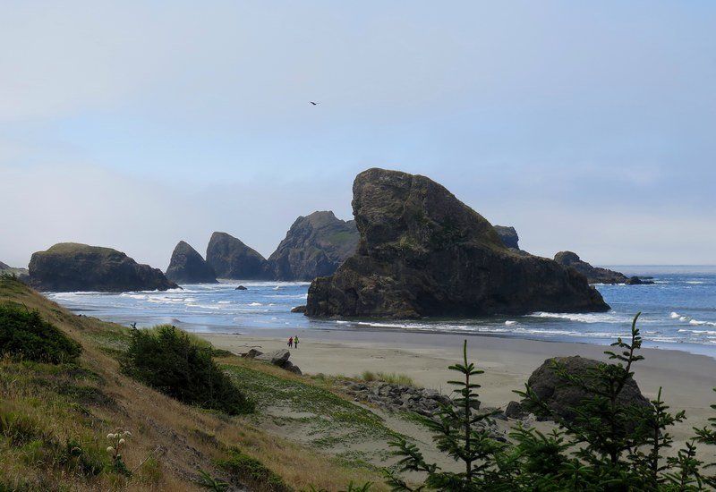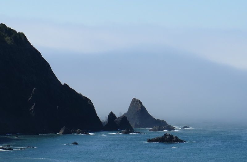 Le beau temps nous accueil au réveil, tout continue de bien se passer, nous quittons le campground vers 10h00 et nous allons en direction de "Humbug State Park" toujours en bordure de côte. La température est de 20° à 10h30, nous nous rendons vers le "Cape Blanco", nous y retrouvons le vent et nous constatons que nous avons perdu 7°, il ne fait plus que 13° dehors. Hugo est chahuté dans tous les sens, nous évitons de sortir et c'est bien dommage car la vue est belle malgré le brouillard qui vient envahir le cap très rapidement. Nous reprenons la route et sommes sur "Humbug SP" à 11h30, nous n'avons fait que 60 km pour nous y rendre. Nous nous installons au campground en plein soleil, les panneaux solaires vont pouvoir travailler toute la journée. Il y a de belles randonnées à faire ici et cet AM nous allons en profiter surtout qu'il fait très beau.