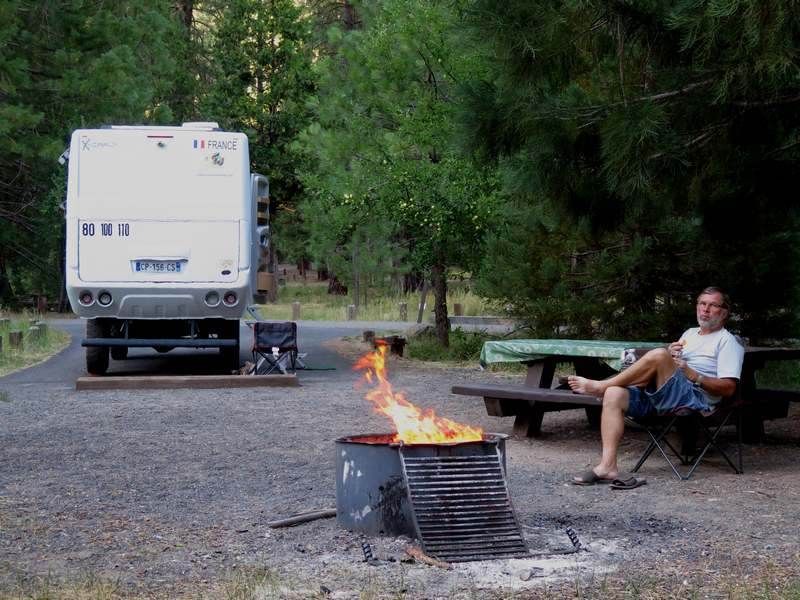 Nous quittons le parking de rêve où nous avons fait une nuit épouvantable, la pire que nous ayons eue depuis bientôt cinq mois pour nous diriger vers un endroit plus calme, du moins nous l'espérons. Mais avant il nous faut faire le plein de ravitaillement et de Go, nous faisons un stop à Arcata et allons chercher un bon moment pour trouver un supermarché. Le temps est au brouillard sur la côte et après quelques kilomètres sur la Hwy299, nous retrouvons le grand beau mais aussi la chaleur que nous avions oubliée depuis un mois et demi. Nous faisons un stop en altitude au "Boise campground National Forest" pensant être plus au frais mais force est de constater qu'ici aussi il fait très chaud, 35° à l'ombre dans l'après midi. Nous ne sommes pas très courageux et un peu assommés, nous avions perdu l'habitude d'avoir très chaud. Une chose est certaine nous serons au calme cette nuit même si la route n'est pas très loin.