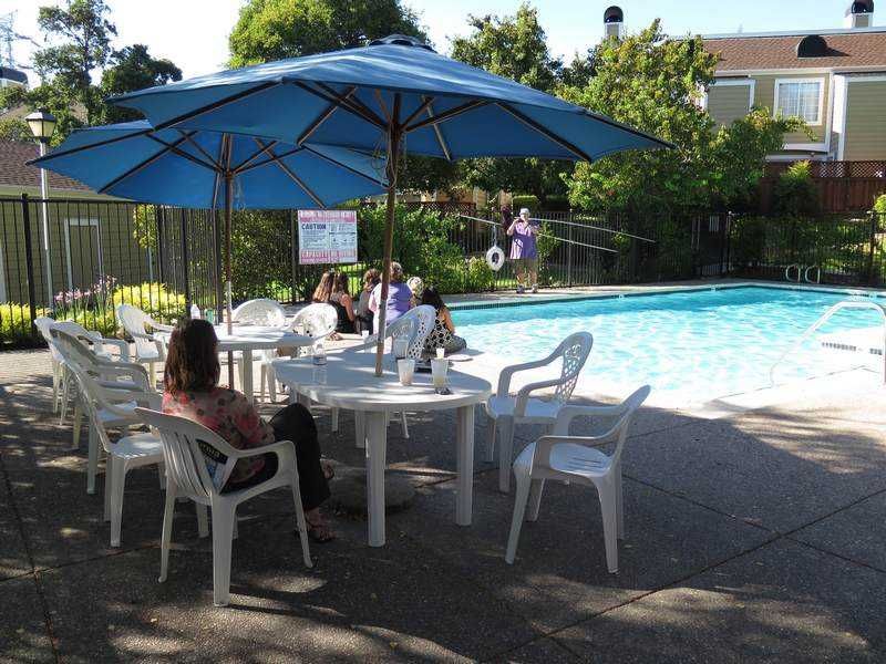 Nous prenons notre temps ce matin devant être chez Yvonne et Mark vers 13h00 et nous ne sommes qu'à 10km de chez eux. Donc matinée tranquille avant de nous rendre à la "pool party" où nous retrouvons nos amis rencontrés en Oregon à deux endroits différents de la côte. Les étudiantes qui sont avec Yvonne en maîtrise arrivent également et nous nous présentons individuellement, en français et nous constatons avec Françoise que leur niveau est très élevé et quasiment sans accent ce qui nous épate. Nous allons passer tout l'après midi au bord de la piscine en savourant quelques plats préparés par nos amis et nous ne les quittons que vers 17h45 afin de rejoindre notre emplacement à Concord.