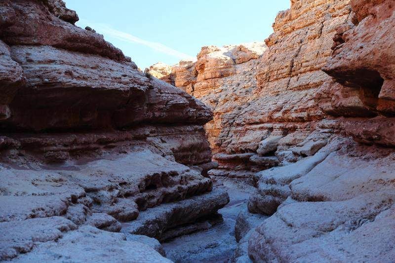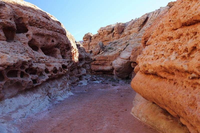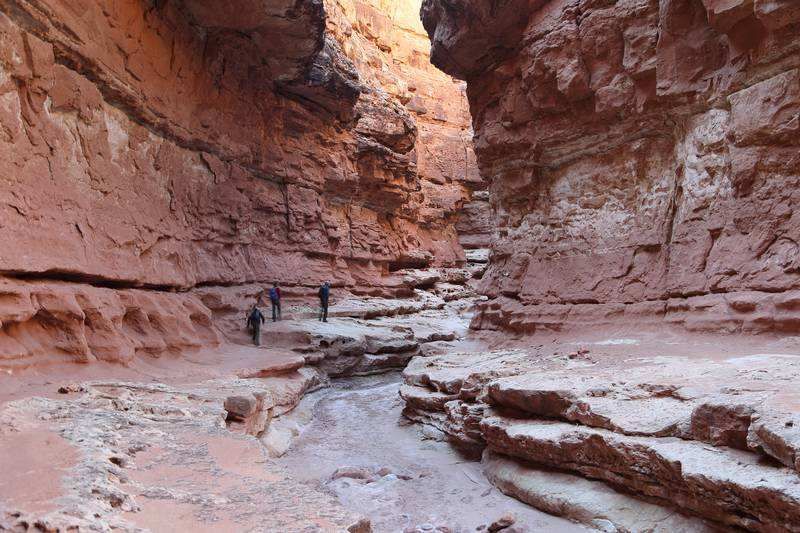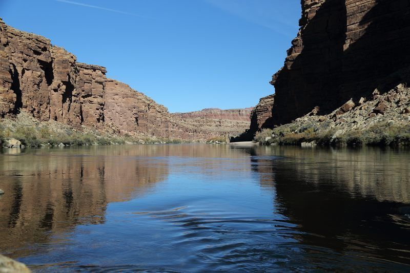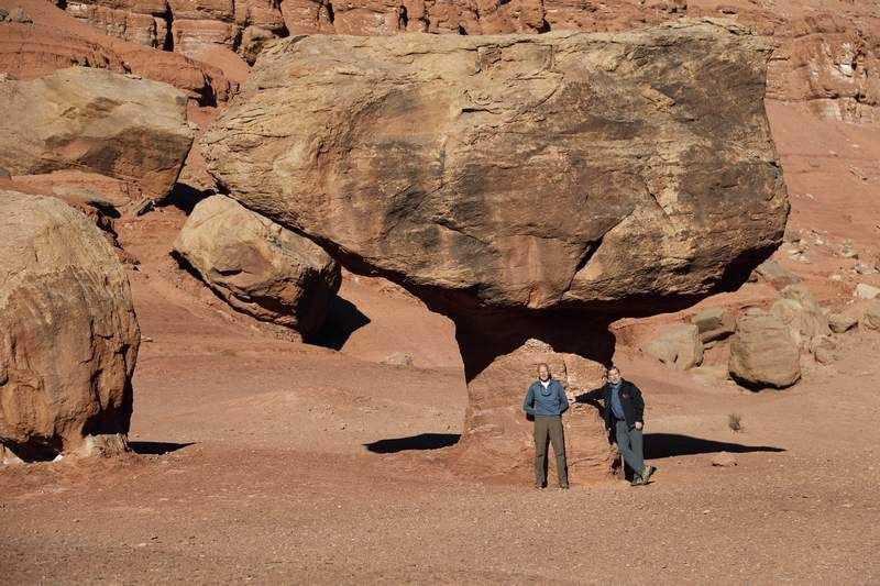 Ce matin nous allons dans "Cathedral Wash", un canyon qui descend du Vermillon Cleef et qui va rejoindre le Colorado dans le "Grand Canyon". La balade commence tranquillement et ne présente pas vraiment d'intérêt au départ mais très vite nous allons avoir un aperçu de ce qui va nous attendre tout du long. Un passage en désescalade avec de l'eau pour nous recevoir en cas de glissade, nous oblige à passer avec de grandes précautions, mais tout va bien. Nous allons continuer cette descente pendant 1h30 avec beaucoup d'attention tout du long car il y a quelques pas d'escalades à faire et il faut venir en aide aux femmes qui ne sont pas toujours à l'aise sur ce genre de terrain. Le soleil ne pénètre pas dans le canyon ce qui fait que nous serons dans l'ombre tout du long, il est trop bas en cette période pour nous éclairer. Nous atteignons le Colorado et retrouvons un peu de chaleur, une halte casse-croûte et un peu de repos nous ferons le plus grand bien. Il y a énormément de truites à cette endroit et le pêcheur que je suis rêve de lancer la mouche, je me contente de les regarder. Le retour sera tout aussi passionnant et difficile pour nos moitiés, il ne nous faudra malgré tout que 1h30 pour retrouver Hugo. Il est 14h00 quand nous commençons à déjeuner et profitons d'une douce chaleur au soleil. Après-midi repos et soirée également, demain nous descendons vers le sud pour être sur Flagstaff lundi 1er décembre.