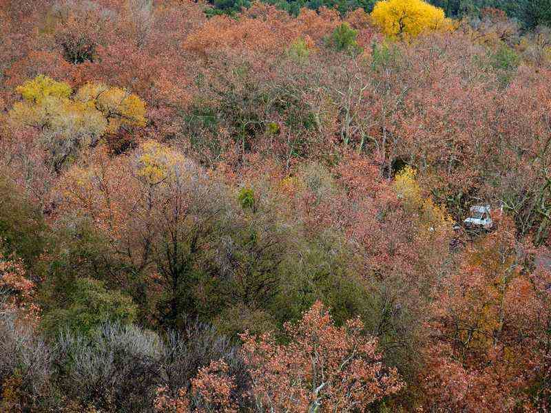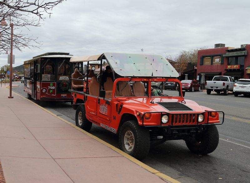 Il ne fait pas chaud ce matin -3° mais le chauffage nous donne vite un peu de jus et le petit déjeuner nous réchauffe encore plus. Le ciel est bien gris, cela nous change des jours précédents, nous prenons notre temps avant de décider quelle route nous allons prendre pour aujourd'hui. Finalement nous prenons la Hwy89A en direction de Sedona et en passant par le Oak Creek Canyon. Première mauvaise surprise, les parkings des départs de sentier sont tous payants et si on rajoute qu'il faut également payer ceux des "States Park", cela fait beaucoup. Nous décidons donc de ne pas nous faire de stop sur ces parkings et continuons notre route jusque Sedona. Nous faisons connaissance avec cette petite ville très touristique, nous n'étions jamais passés par ici durant tous nos autres voyages c'est donc une découverte. Nous visitons la grande rue principale, faisons connaissance avec deux canadiens qui voyagent en vélo, ils viennent du nord de Toronto et vont jusqu'au Mexique puis nous décidons de prendre une piste pour le bivouac du soir. Et bien quelle piste? Si le premier kilomètre semble relativement facile, la suite l'est moins, des marches importantes vont nous empêcher de continuer plus loin et nous devons faire demi-tour sur quelques mètres de large. Pas simple mais j'ai évité le ravin et nous voici de retour sur Sedona où nous trouvons du WiFi et nous en profitons pour consulter les mails et faire un tour sur les sites à visiter dans le secteur. La météo est mauvaise pour cette nuit et demain puis ensuite cela devrait s'améliorer, nous le souhaitons fortement, demain sera un autre jour aussi nous verrons bien.