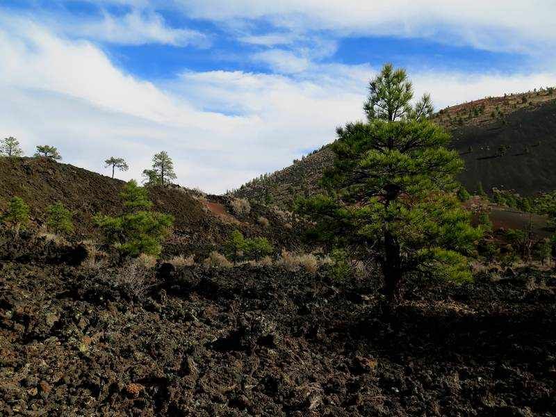 On ne se lève pas trop tôt, le temps est voilé et il ne fait pas froid, 5° dehors et 12° dans la cellule, juste un peu de chauffage et tout est parfait. Françoise nous prépare des œufs bacon et en fait également pour Christian, Sylvie n'est pas fan. Vers 10h30 nous partons faire une petite visite dans "Sunset Crater" et une petite balade histoire de nous changer les idées. Sur l'autre versant il ne fait pas chaud car le vent est très fort, nous enfilons les coupe-vent et les supportons fort bien. Quel écart de température avec hier après-midi.