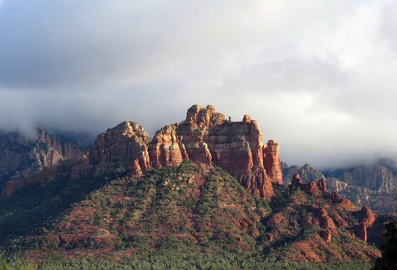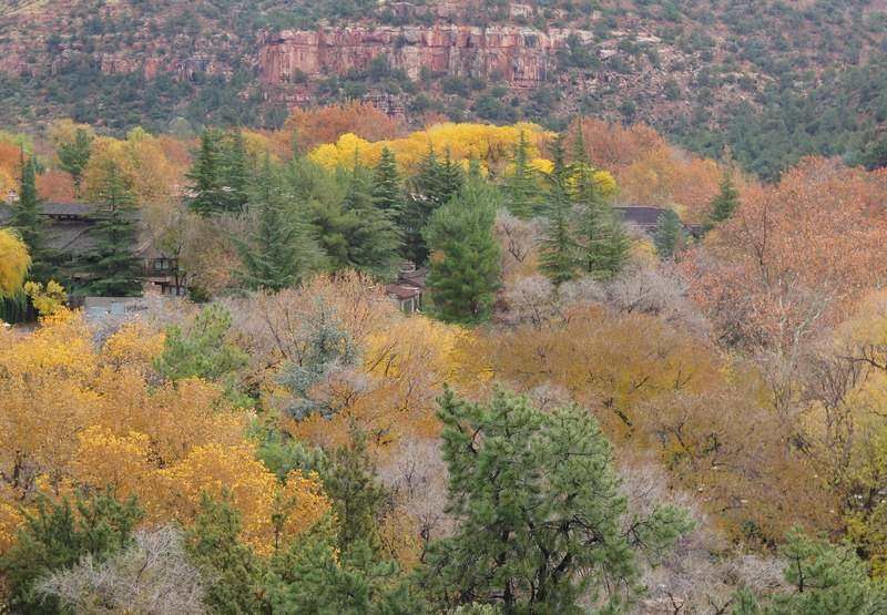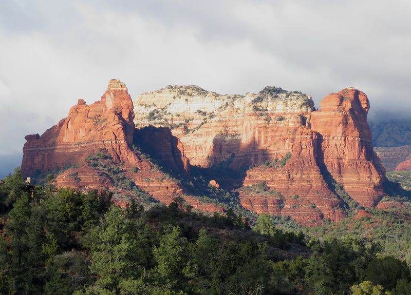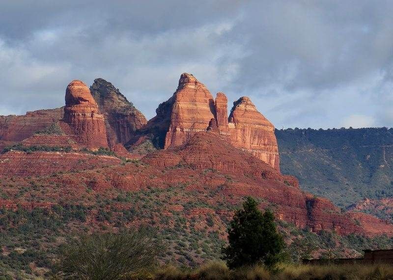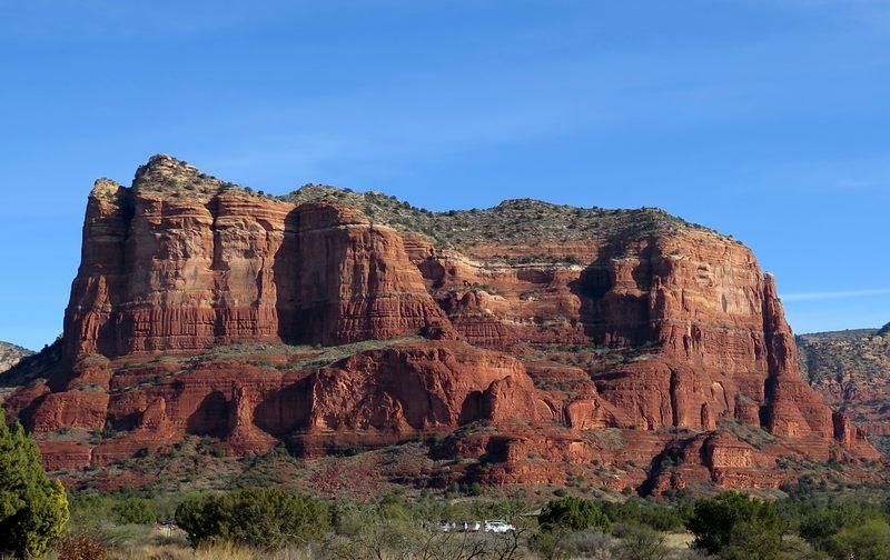 Nous sommes arrosés depuis hier soir, la pluie est tombée toute la nuit et cela va durer toute la journée mais nous ne le savons pas encore quand nous mettons les pieds sur le sol. Nous en profitons pour rester au chaud dans Hugo bien que dehors il fasse doux, 9° et 15° dans la cellule. Autrement dit programme très allégé ce jour, nous irons faire un tour à pied sur la route principale dans l'après midi ce qui va nous faire passer trois heures avant de réintégrer notre destrier. Nous sommes passés par le "Visiter Center Officiel", faut bien préciser car les vendeurs de tours en jeep se nomment également "Tourisme office" et cela n'a rien à voir. Nous avons toutes les bonnes infos pour aller faire de belles randonnées ici quand le soleil sera revenu. Le seul hic c'est qu'il n'y a pas de possibilité de bivouaquer dans une très large zone autour de Sedona et cela pose problème car les campings sont hors de prix. Tout est du luxe ici, nous sommes dans la région classée N°1 aux USA pour 2014 et cela se ressent sur les tarifs pratiqués même si nous sommes en hiver ou presque. Le tourisme est omni présent, il y a beaucoup de monde en villégiature, surtout des retraités ( je ne vise personne). Demain si le temps s'améliore nous irons sur une route forestière vers l'ouest afin de pouvoir nous mettre au vert gratuitement mais il faudra revenir pour accéder aux points de départ des sentiers. Alors à demain pour la suite et espérons le, sans la pluie.