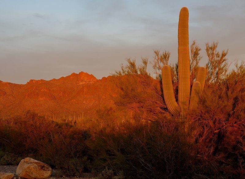 Petite soirée tranquille en prenant quelques couleurs du coucher de soleil sur les montagnes et les cactus puis repas et dodo, nous en avons besoin.