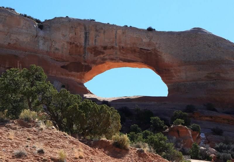 Pas de chance ce matin, alors que le temps est magnifique, la piste qui doit nous mener au départ du trail de Druid Arch est encore fermée donc comme nos provisions sont complètement épuisées nous décidons de quitter les Needles.