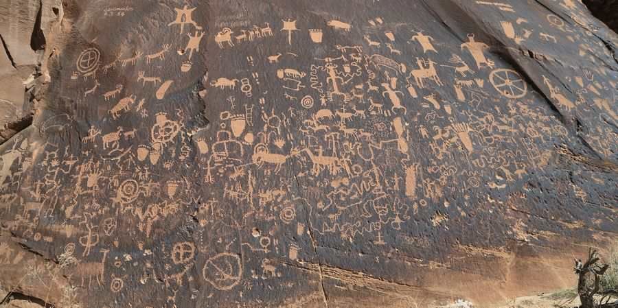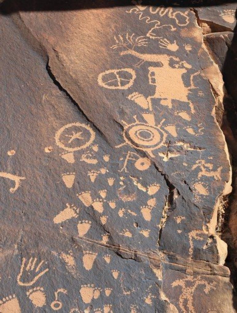 Nous quittons Moab vers 13h30 et reprenons la route en sens inverse jusqu'aux Needles avec un petit stop aux petroglyphs de Newspaper Rock que nous avions vu sous une tempête de neige l'année dernière.
