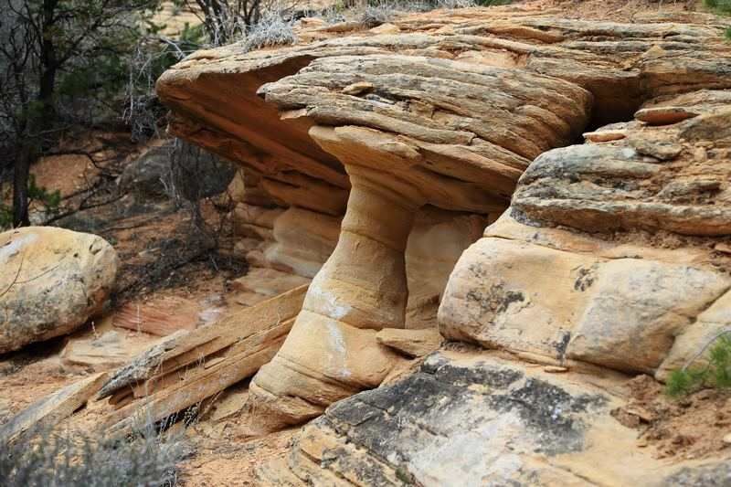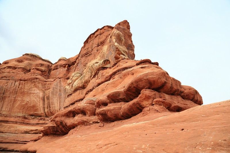 Les voisins se sont calmés nous n'avons pas eu de bruit cette nuit, autrement dit nous avons bien dormi. Mais le réveil se fait sous un ciel plombé et menaçant, c'est bien dommage car notre sortie prévue tombe à l'eau. Nous nous préparons malgré tout et allons au Visitor center pour y prendre la météo, pas terrible ce jour et nettement mieux demain. Nous nous retenons un site au campground puis nous nous rendons au départ des trails qui nous intéressent. Nous choisissons une boucle qui fera 14km tout de même si le temps nous laisse tranquille. Bien entendu, pas grand monde sur cette balade, nous ne croiserons que cinq personnes sur les 3h30 que va durer la randonnée. Malheureusement les couleurs sont ternes pour les photos, néanmoins nous profitons de très beaux passages aériens avec quelques pas d'escalade et d'une descente un poil vertigineuse au milieu de la boucle.