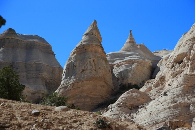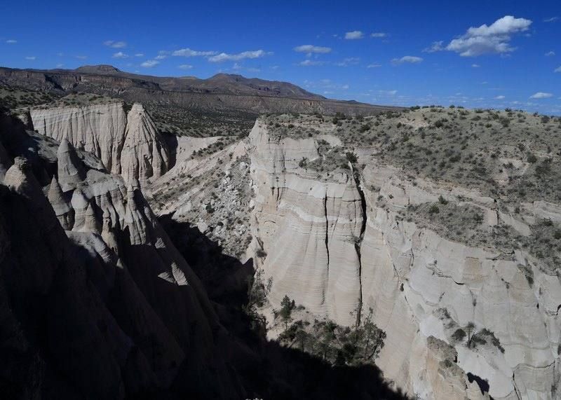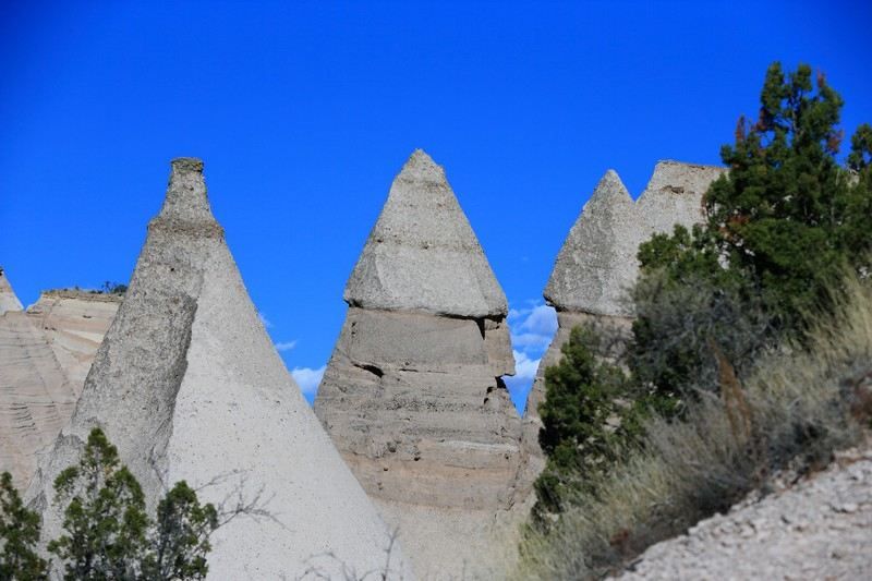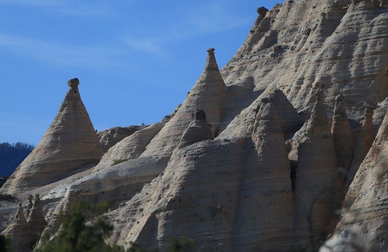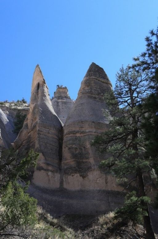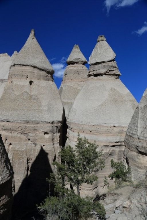 Encore une nuit fraîche, -4° de nouveau ce matin mais comme le soleil chauffe vite pas de souci et puis le chauffage nous aide beaucoup. Ce matin nous prenons la direction d'un site qui devrait être remarquable "The Tent Rocks" toujours plus au sud et en direction d'Albuquerque et 265km à faire.