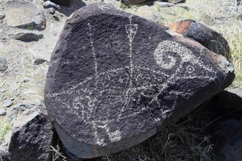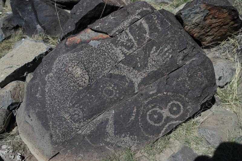 Nous quittons White Sand vers 13h00 et reprenons la route vers Carrizozo afin de faire le stop sur "Three Rivers Petroglyph". Nous y passerons une heure à fouiller tous les rochers qui sont à proximité du sentier et allons faire de belles découvertes.