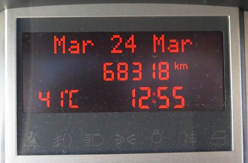 Nous faisons un stop à un moment donné pour refaire le plein et quand nous voulons repartir Hugo se met en colère, impossible de le mettre en marche. J'essaie plusieurs fois, rien, puis un semblant de démarrage, puis plus rien. J'insiste à nouveau, il semble repartir et donc nous reprenons l'autoroute mais au bout d'un petit kilomètre, plus rien, l'écran indique "EDC avarie panne moteur N°37", nous voila bien, je ne pensais pas que nous aurions un souci de ce côté. Puis me revient en mémoire la panne de Christian l'an dernier dans "Valley of Fire", même symptôme. Je mets du produit anti-moisissure dans le réservoir que je venais de remplir, j'attends un peu qu'il se mélange et je tente de le faire repartir. Il me faudra plusieurs essais et il redémarre. Bon nous reprenons la route mais pas trop rassurés tout de même. Et bien plus rien, tout va bien, nous sommes arrivés à notre étape et avons fait 300 km après ce contretemps, espérons que cela va continuer de bien fonctionner car nous sommes encore loin de la France!