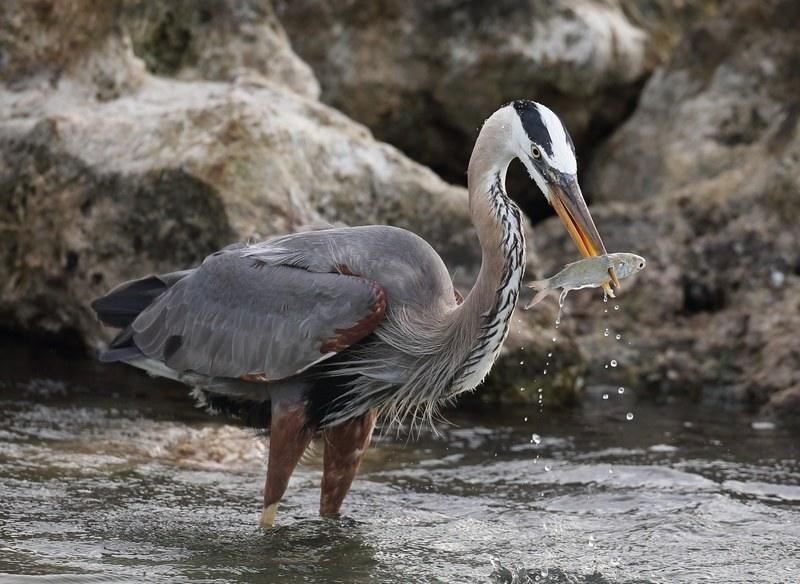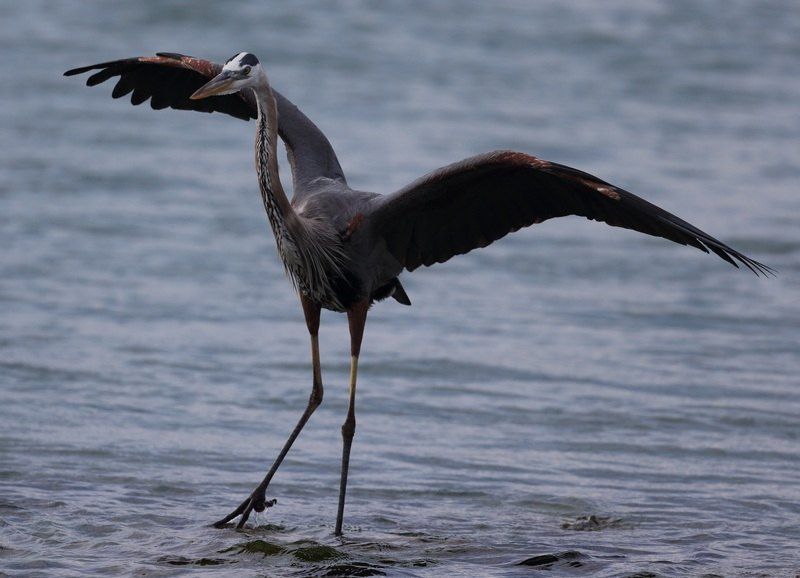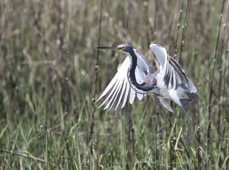 C'est dimanche aujourd'hui donc repos pour nous, nous en avons bien besoin, la journée commence par des pancakes que Françoise réalise parfaitement, c'est bon. Nous quittons notre emplacement en fin de matinée et nous partons à la découverte des marais du nord de la Floride. Il y a beaucoup de pêcheurs en kayaks, pas facile de naviguer autrement par ici, quelques oiseaux également dont un héron bleu qui va me retenir un bon moment. Vers 12h30 nous retournons au "State Park" pour y faire le "check in" des deux nuits à venir et ensuite nous allons au parking de la plage. Nous y prenons notre déjeuner puis nous allons essayer de nous baigner et là ce n'est pas gagné car l'eau est bien plus froide que 100km au sud. Je vais entrer jusque la taille et ressortir sans avoir fait "plouf", ça caille trop, donc le dernier bain aura été pris à Sebastian. C'est l'orage qui nous fait partir, comme hier la pluie tombe en très grosses averses de quelques minutes, le tonnerre se fait entendre, nous partons nous installer au campground attendre la fin de journée tranquillement.