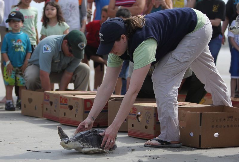 C'est la fin de semaine et il va y avoir du monde partout aussi nous ne pensons pas obtenir une place dans les "State Parks" de la côte car sur internet nous n'avons pas trouvé. Donc nous voici de nouveau en route vers le nord à la recherche d'un campground pour la nuit autrement nous irons sur un parking de supermarché, mais ce n'est pas l'idéal. Le premier "State Park" où nous tentons notre chance est plein, nous nous en doutions un peu. Nous longeons la côte, empruntons des routes avec des ponts qui se soulèvent pour laisser passer les bateaux, traversons de beaux villages comme celui de St Augustine qui a été fortifié par les espagnols puis nous voici arrivé au "State Park" de "Little Talbot Island" où nous avons retenu deux nuits à partir de dimanche soir. Nous y tentons notre chance en précisant que nous avons une résa pour deux nuits et miracle le ranger nous trouve une place, nous sommes très contents car cela nous évitera de courir. Avant de nous installer nous allons à la plage du parc et à peine arrivés nous voici cernés c'est le mot, par des curieux qui veulent tout savoir sur Hugo, nous nous prêtons de bonne grâce à ce petit jeu, posons pour les photos puis nous partons vers la plage. Nous voyons un attroupement et en curieux nous nous approchons pour voir, en fait il s'agit d'un lâcher de tortues marines pour la reproduction en milieu naturel. Nous profitons donc de ce moment un peu particulier et agréable. Malheureusement l'orage gronde aussi nous allons au campground pour nous y installer et à peine terminé nous sommes sous des trombes d'eau. La température va chuter mais il nous faut tout de même vivre avec la climatisation car autrement c'est insupportable. La même température dans l'ouest ne nous posait pas de problème mais ici c'est l'humidité qui est terrible, cela rajoute à la sensation de chaleur. nous finirons la soirée toujours sous un gros orage et en prenant un apéritif du sud de la France, faut bien se faire plaisir.