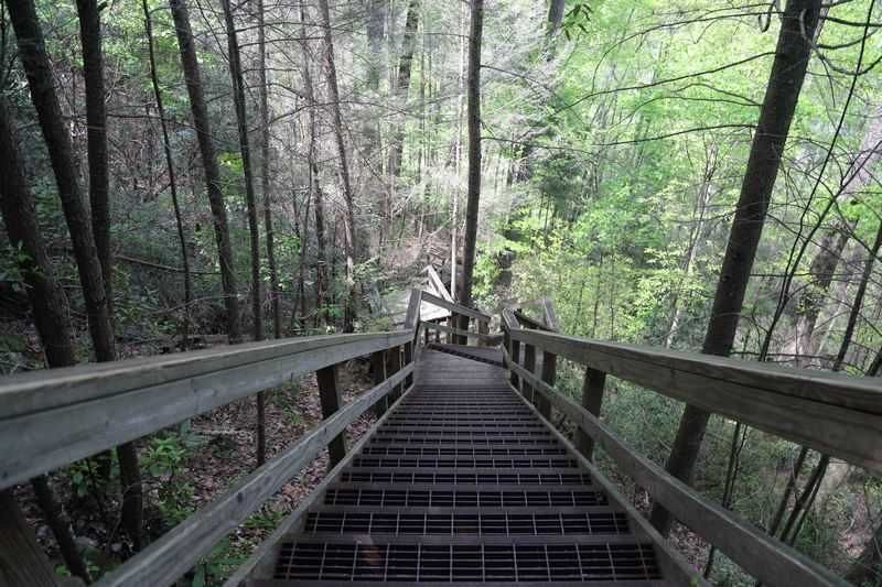 Notre balade va être sympa mais va se résoudre à un parcours de montée et descente de marches. Nous allons tout d'abord en descendre 321 sur la rive nord de la gorge, traverser un pont suspendu et remonter 347 marches pour rejoindre la rive sud, de quoi nous couper les pattes!