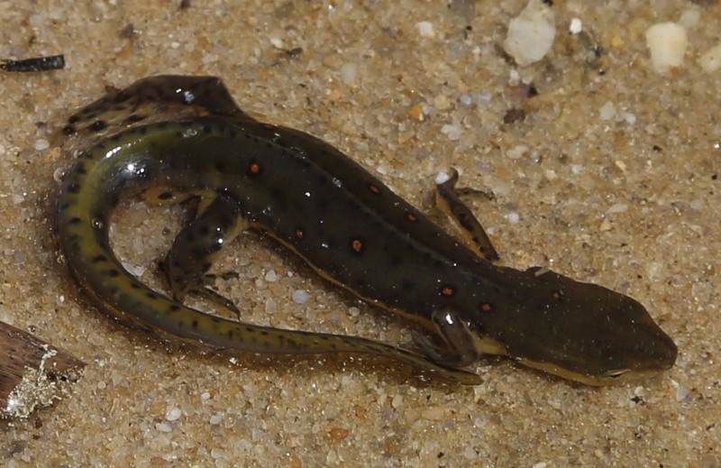 Nous prenons notre repas assez tôt et partons tous les quatre en balade autour du lac, nous y voyons des salamandres et aussi quelques papillons mais rien de plus. Cette promenade nous fait du bien car cela fait tout de même un moment que nous n'avons pas vraiment marché. Retour dans nos camions vers 15h00 et repos dehors avec les quelques rayons de soleil qui restent car le temps change et se couvre rapidement.