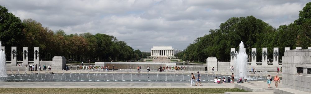 Nous continuons vers le "Washington Monument", en forme d'obélisque puis nous nous dirigeons vers le "Lincoln Memorial" en longeant le "National Mall and Memorial Park. Nous entrons par le "World War II Memorial", suivons la mall jusqu'au bout en faisant une halte sur un banc et à l'ombre, la fatigue est là et la soif aussi, il fait très chaud.