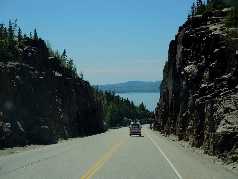 Nous allons continuer de longer le Lake Superior jusque Thunder Bay où nous prévoyons de faire le break du soir. Aujourd'hui nous avons plus de chance pour l'observation de la faune, nous verrons deux ours noirs, trois élans le tout sur les bords de la route. Il fait très beau depuis que nous allons vers l'ouest mais moins chaud que sur Montréal, tant mieux. La vue sur le lac est toujours aussi sympa mais petit à petit les paysages changent, moins de forêt et plus de champs, nous filons vers le Manitoba qui doit être moins intéressant, nous nous en rendrons compte demain puisque nous allons vers Winnipeg, alors à demain.