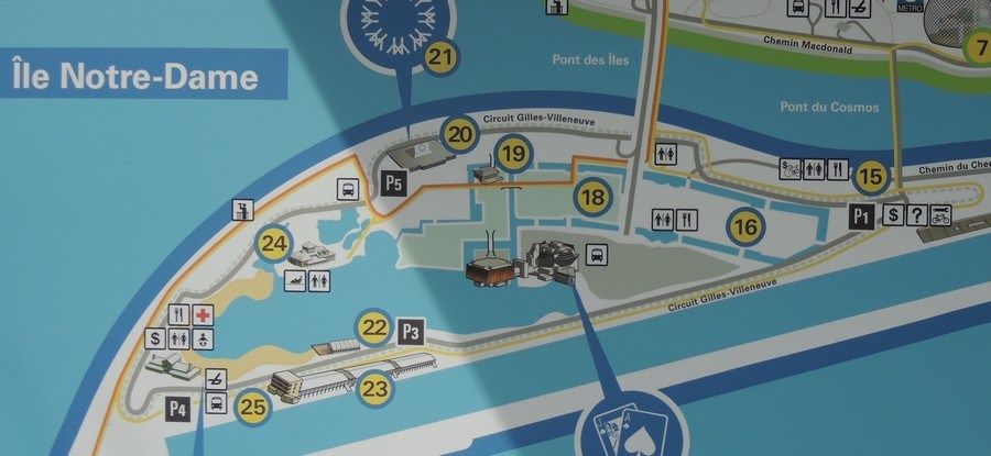 Commençant à être fatigué, nous reprenons le métro et nous descendons à Jean-Drapeau car je veux voir le circuit Gilles Villenneuve où se tiendra le Grand Prix de F1 la semaine prochaine. Et bien je ne verrais rien, impossible de passer sur l'Ile Notre Dame car ils sont en pleine installation pour le GP, dommage, je n'enverrais pas de photos à JEV, pilote Toro Rosso que je connais depuis qu'il a commencé en kart.
