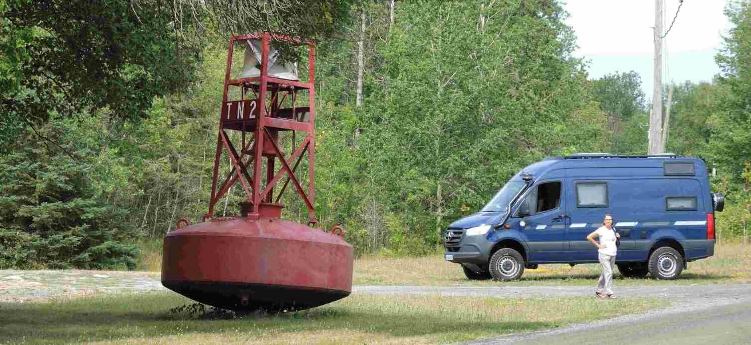 Nous trouvons un emplacement pas trop cher dans un campground de parc et au bord du lac Huron, il nous faut de l'eau aussi ce stop est indispensable. Après la frontière nous ne savons pas où ni quand nous en trouverons, nous sommes dans les bois au calme, cool pour cette nuit.
