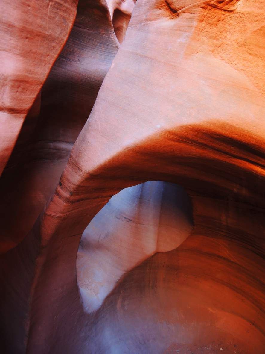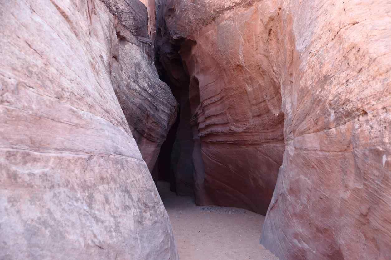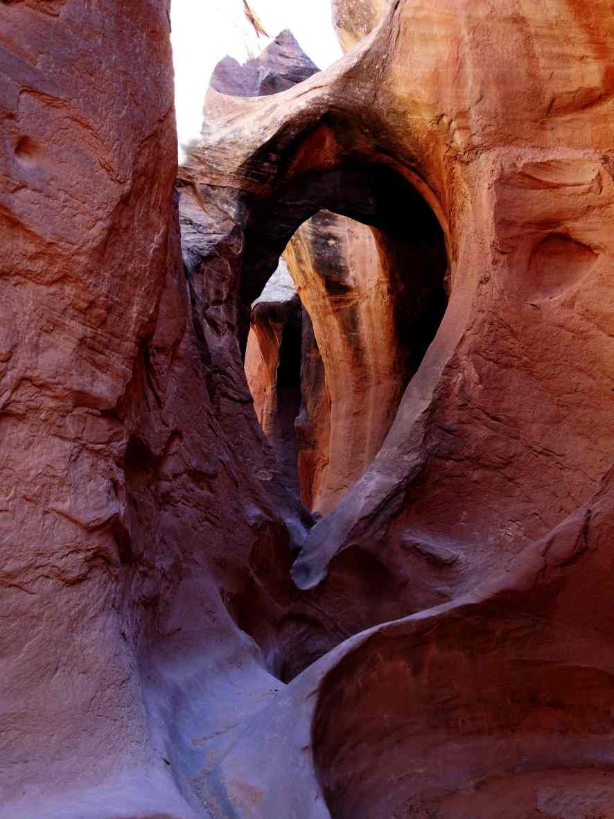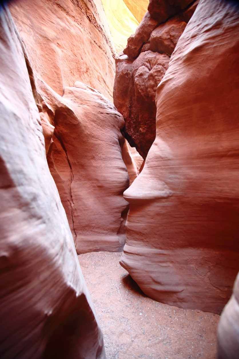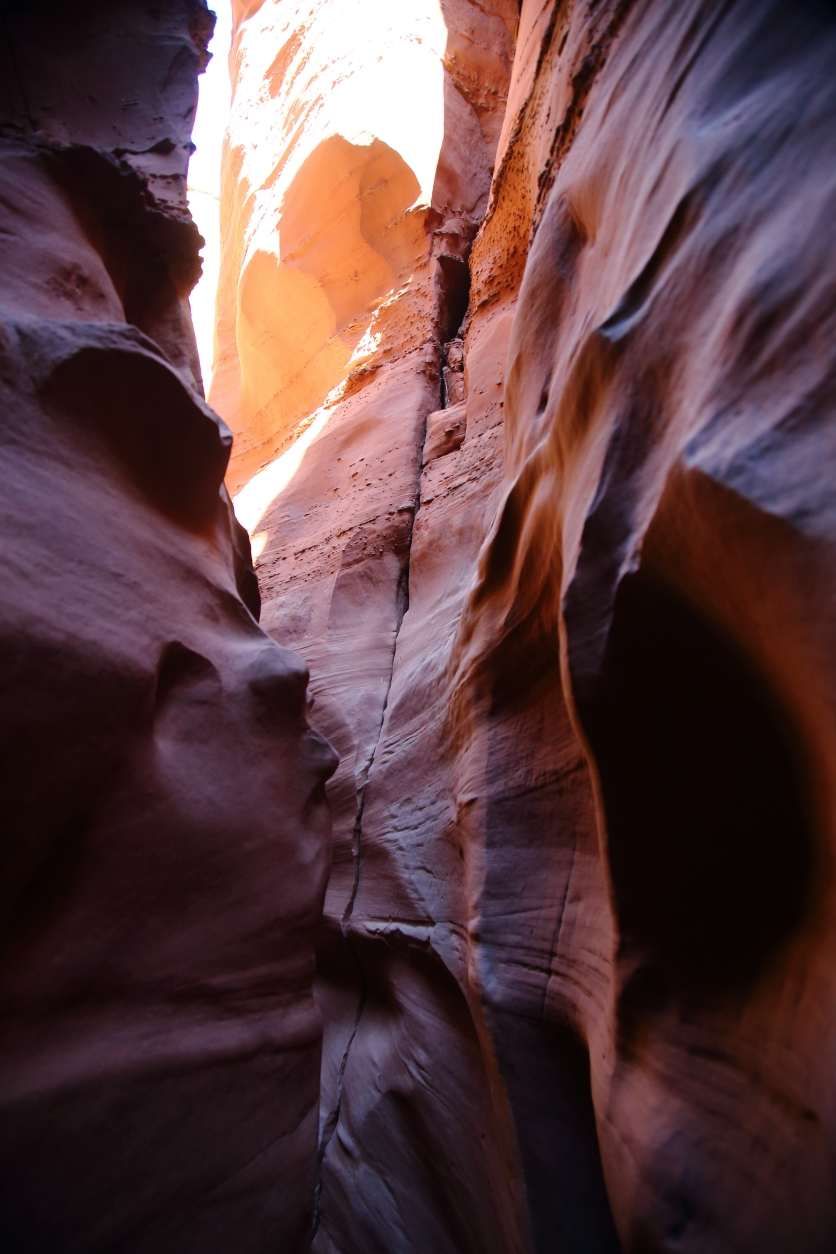 Nous ne mettrons que 40 minutes pour atteindre l'entrée de Spooky, il fait très sombre à l'intérieur mais le soleil va vite entrer pour nous éclairer. C'est vraiment pas large dans ce slot et je me souviens de la phrase de Sylvie " il ne faudrait pas un tremblement de terre sinon nous sommes écrabouillés", on ne peut pas dire mieux. Nous irons au fond du canyon et ferons demi-tour et cette fois ci le soleil est bien présent, maintenant direction Peek a Boo.