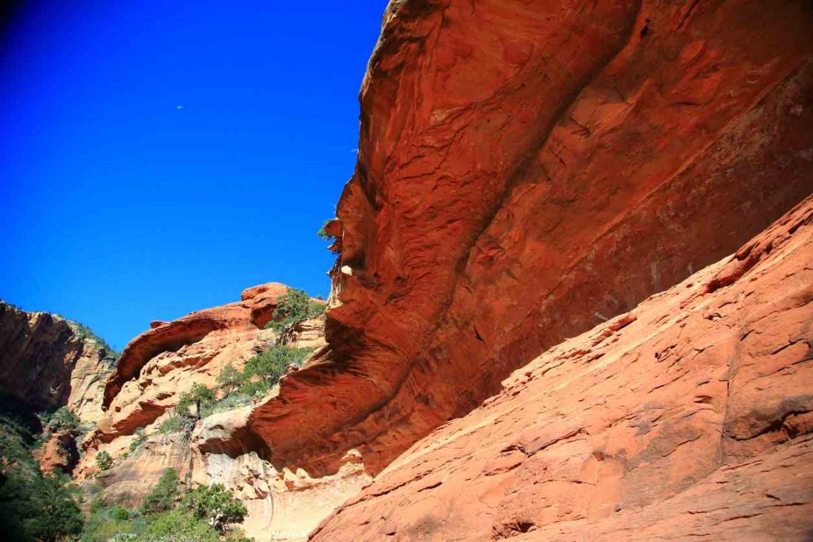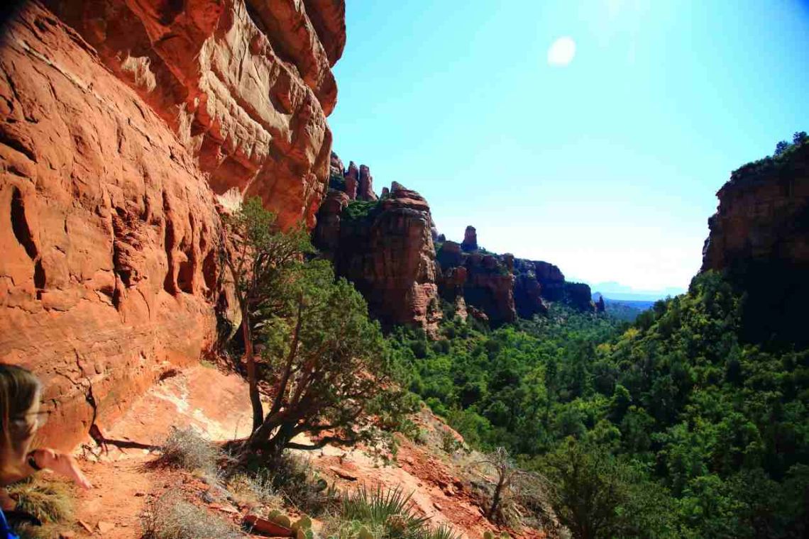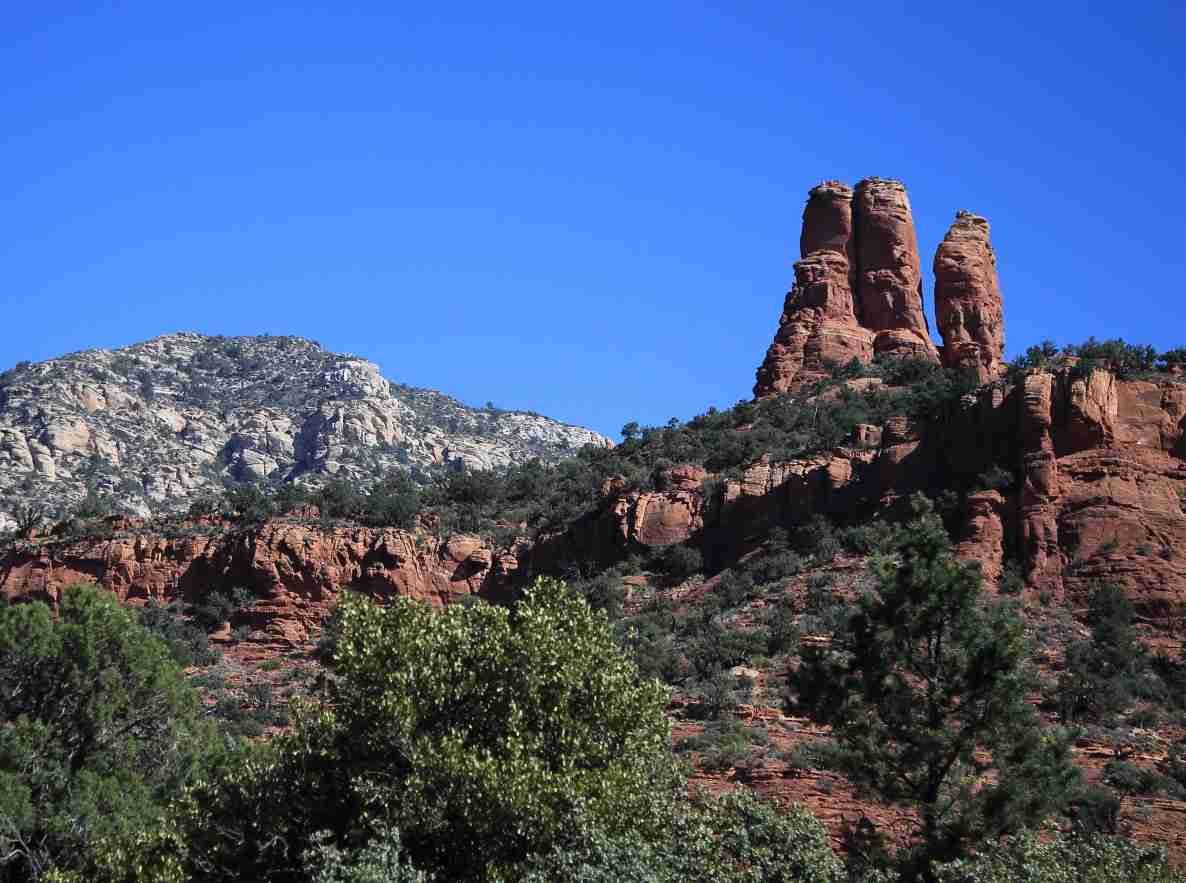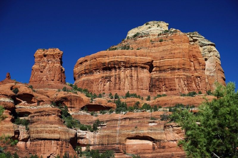 Nous filons vers Sedona de nouveau et cette fois ci nous allons y faire des balades. Celle du jour ne sera pas une très grande balade car il y a du chemin à faire en partant de Flagstaff. Néanmoins nous allons faire le tour et le sommet de Chimney Rock. Nous quittons le parking vers 10h45 et entamons la montée vers la gauche qui nous offre une belle vue sur la vallée et les belles maisons qui sont construites par ici. Nous prenons un sentier assez raide qui part vers le sommet et nous laisse tomber au pied des deux gros cailloux puis il faut redescendre par le même chemin. La suite est plus facile, nous arrivons à Chimney Pass et retour en descente jusqu'au parking où nous retrouvons Hugo III. De là nous partons bivouaquer au même endroit que mercredi et jeudi, nous y sommes au calme et dominons la vallée. il y a quelques véhicules mais ce n'est pas la foule malgré la fin de semaine. Il fait très chaud dehors et nous apprécions l'ombre que nous fournissent les quelques arbres autour de nous.