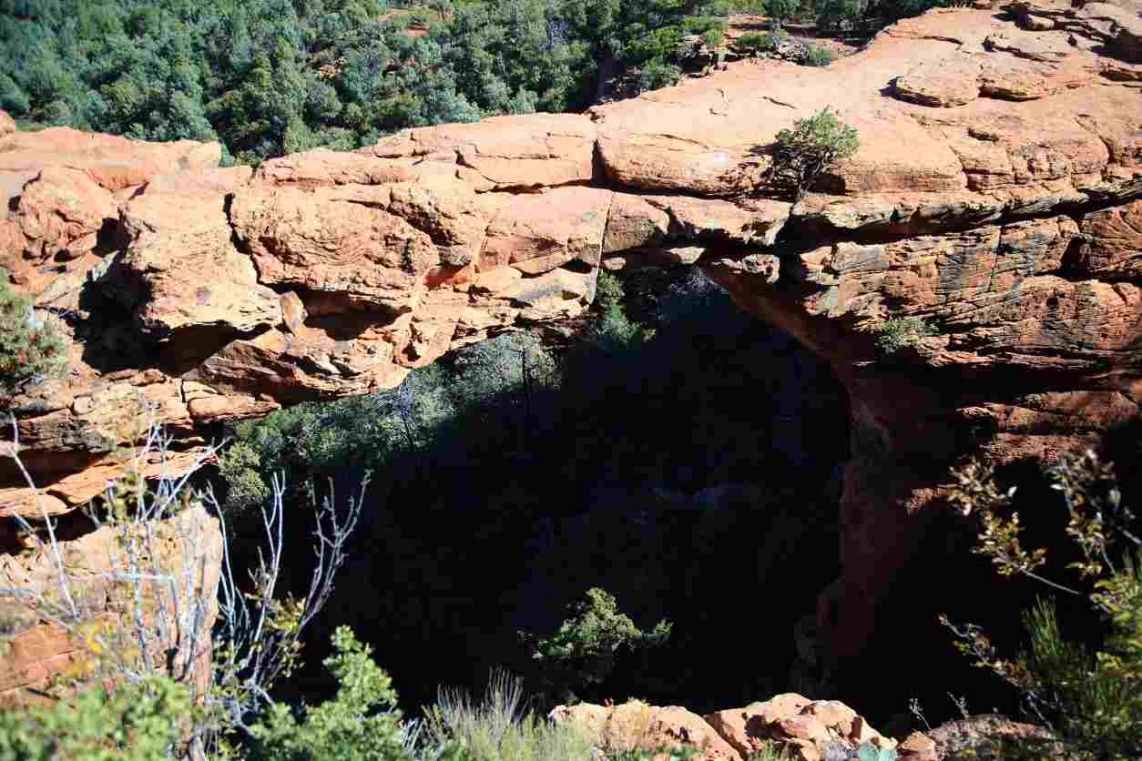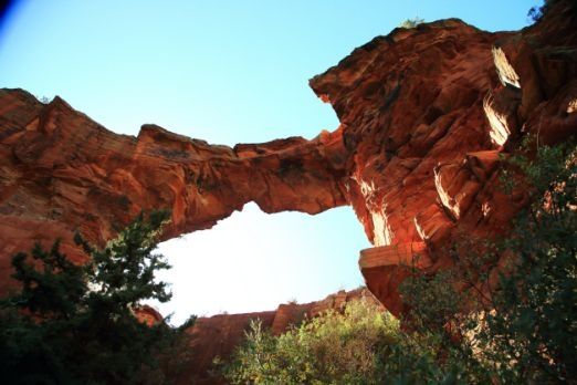 Après une bonne nuit nous sommes debout assez tôt pour voir s'envoler les ballons qui cette fois ci viennent presque vers nous mais ce matin je ne sors pas pour les shooter. Nous sommes vite sur pieds et nous partons vers une randonnée au dessus de Sedona, oui mais c'était sans compter que nous sommes dimanche et le parking de la balade est saturé et il est interdit de se garer ailleurs. Nous sommes entourés par de très grosses propriétés et nous comprenons que les parkings soient interdits. Nous filons donc maintenant vers une seconde balade , le Devil's Bridge et nous constatons que le parking est également saturé ainsi que la route qui y mène, dépités nous allons faire demi tour quand une voiture quitte son emplacement devant nous, ouf nous allons pouvoir rester cette fois ci. Nous partons vers la balade qui emprunte une piste réservée aux gros 4x4 et quand nous voyons l'état nous ne regrettons pas de ne pas nous y être engagés. Il nous faudra juste une heure pour arriver au bridge par un sentier qui monte raide et où il faut mettre les mains pour se hisser. Il y a un monde fou, nous faisons la queue en attendant que les gens qui descendent nous laissent le chemin. Evidemment arrivé au Bridge celui-ci est pris d'assaut et il est difficile de faire des photos sans personne dessus.