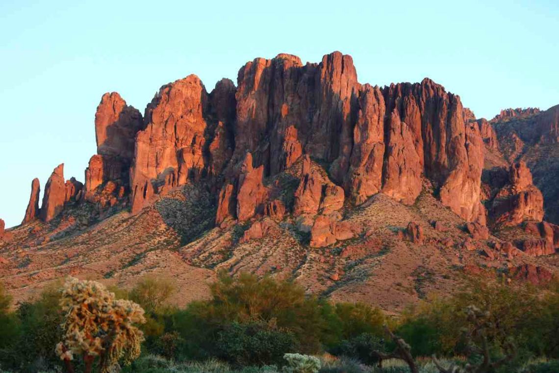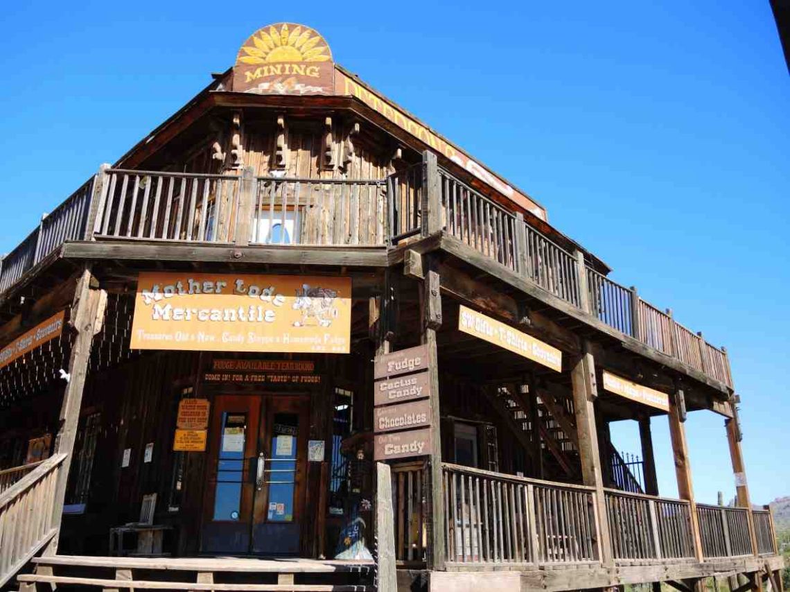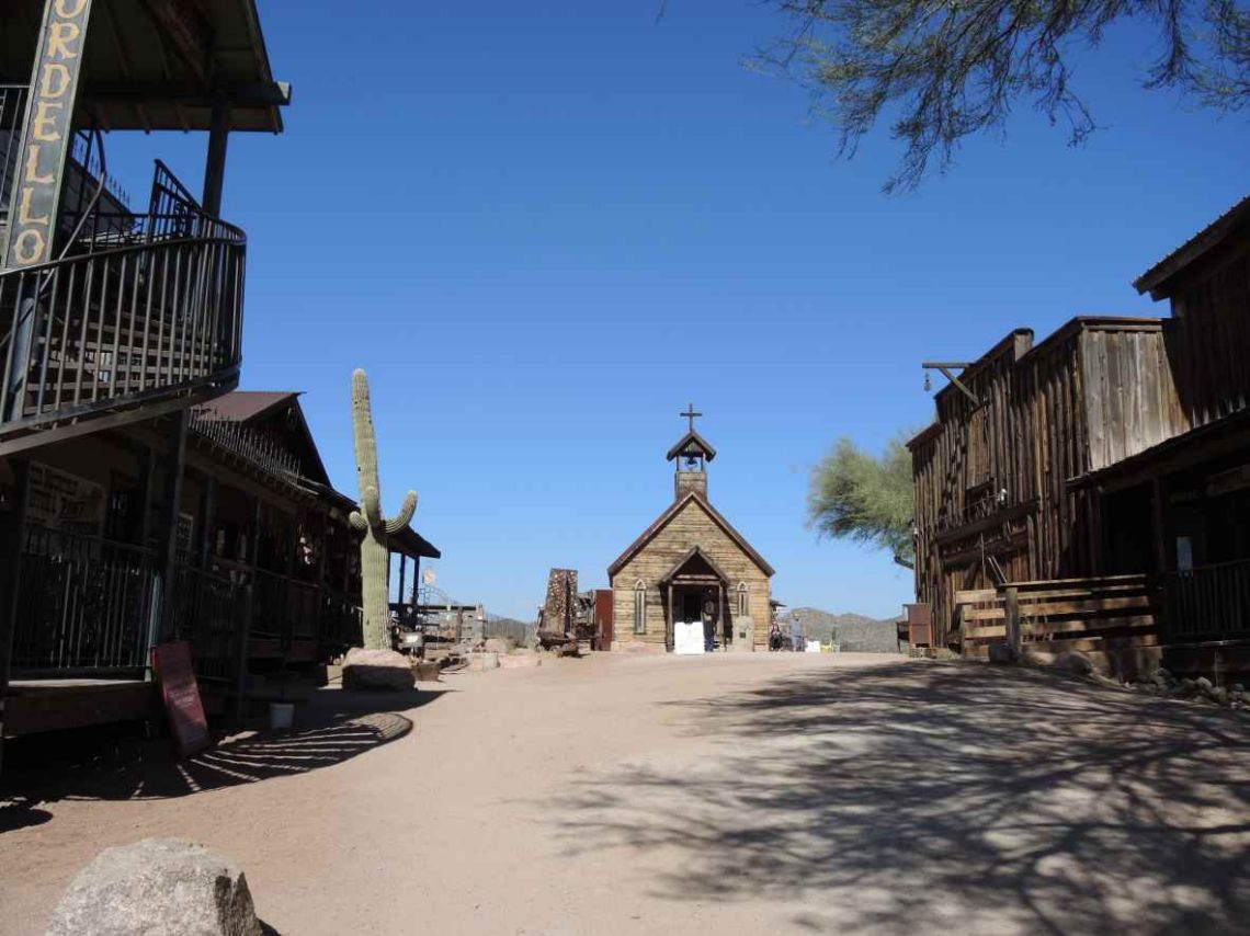 Un peu de chauffage pour petit-déjeuner au chaud et nous voici partis pour une belle balade vers Superstition Mountains. Nous revenons pour le repas de 12, non 13h00 qui va nous faire du bien. Le soleil donne à fond nous devrions être bien cette après-midi. Nous partons vers un village baptisé Goldfield Ghost Town, qui est une reconstitution d'un village western mais vraiment très bien fait. Des boutiques partout, bars et autres restaurants, attractions diverses, bref faut laisser des espèces. Nous prendrons une glace chacun qui aurait été suffisante pour trois personnes, on ne regarde pas ici !