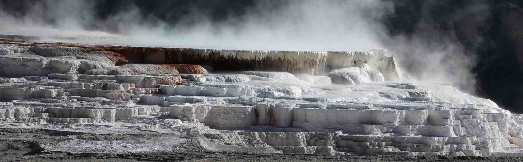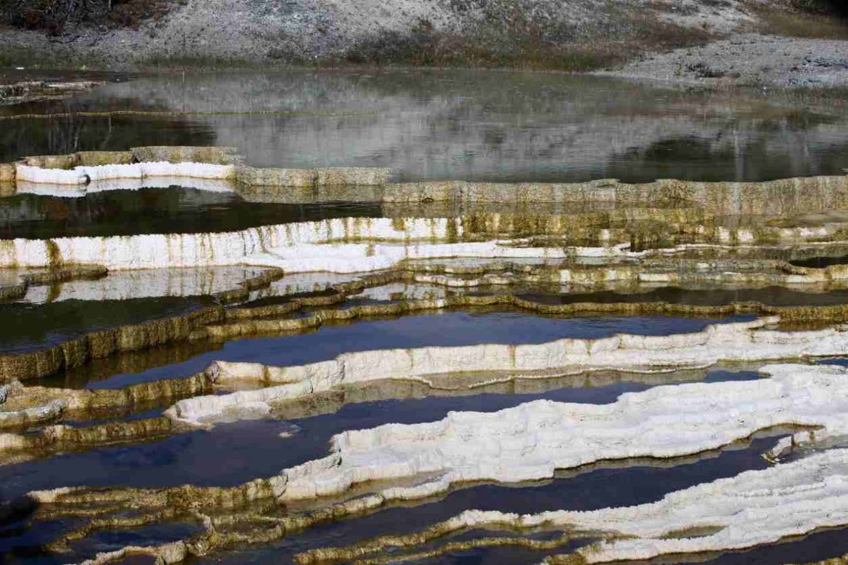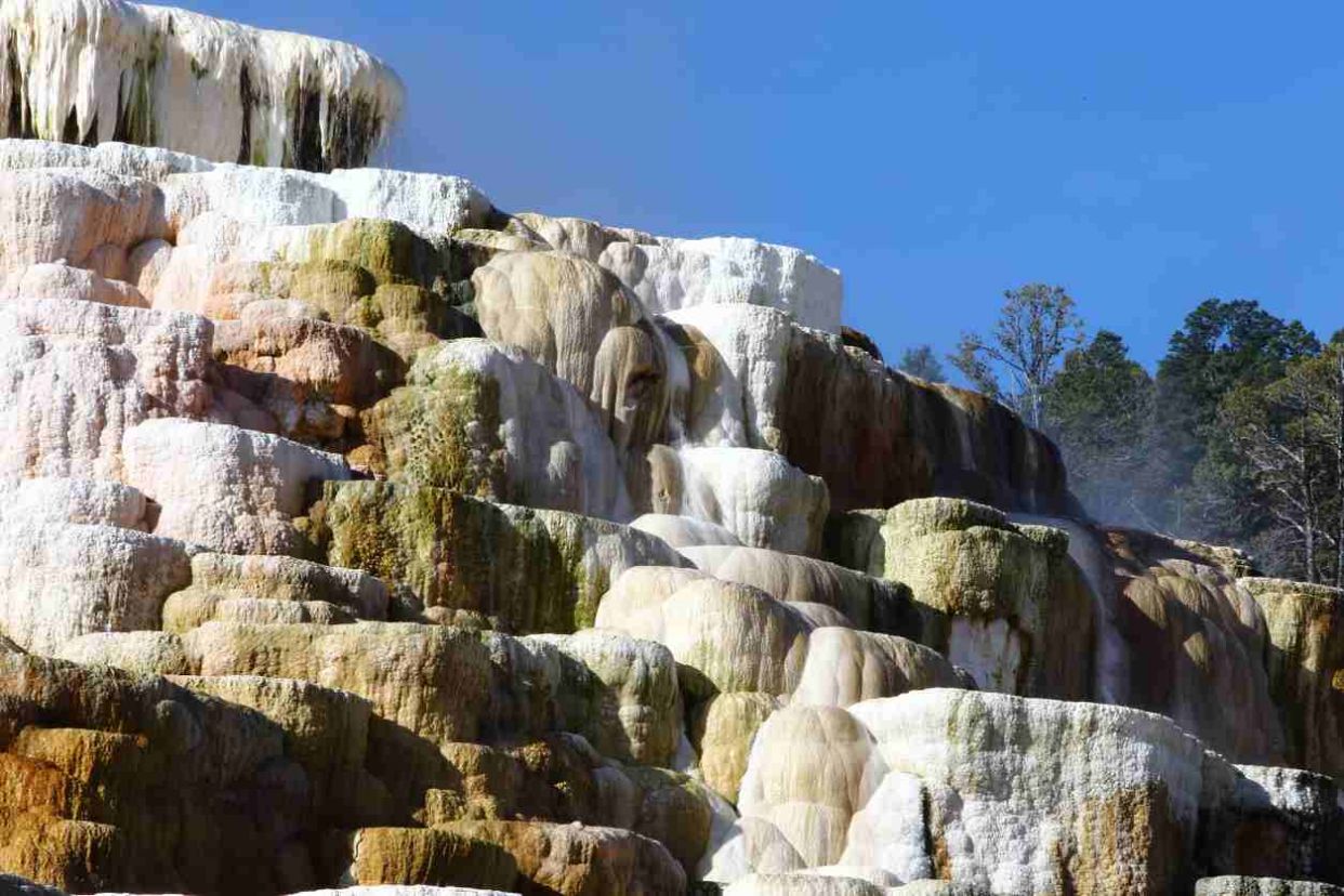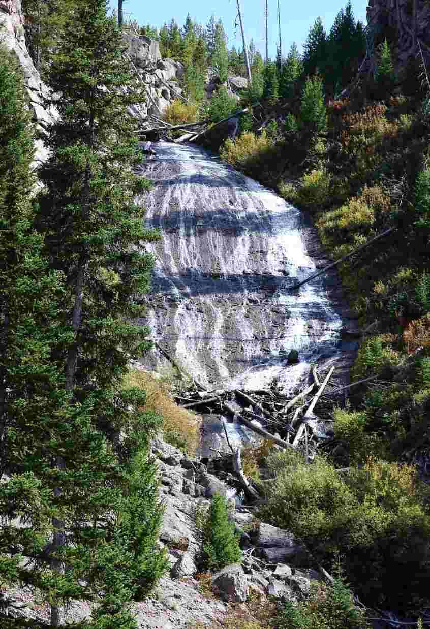Nous partons très tôt car il va falloir trouver un site pour ce soir à Mammoth Hot Springs et si possible pour samedi soir car nous arrivons sur le W-E et compte tenu de la foule cela ne va pas s'arranger. Il fait beau ce matin et il a gelé blanc, nous avions 1° au thermomètre du camion. Nous allons être bloqué trente minute par des travaux et nous arrivons sur Mammoth vers 10h00, direction le campground où il y a déjà la queue. Par chance nous trouvons un site libre, il n'en reste que 7 après nous et ils seront vite plein. Nous collons notre réservation et reprenons la route du nord pour aller voir toutes les cascades ainsi que les sites intéressants. Nous espérions pouvoir retourner au Mount Washburn en randonnée mais c'est fermé sans aucune explication. Nous déjeunons sur place et rentrons tranquillement au campground tout en faisant les stops de notre côté. Nous voulions nous réserver un table au lodge pour ce soir et il nous est impossible de trouver une place afin d'aller faire la résa, c'est vraiment cata. Et bien nous dînerons au coin du feu sur notre site avec vue sur la vallée et nous espérons voir les elks ce soir car pour le moment ils ne sont pas là. Demain nous irons faire les terrasses, but de notre venue ici et l'incontournable du coin.
