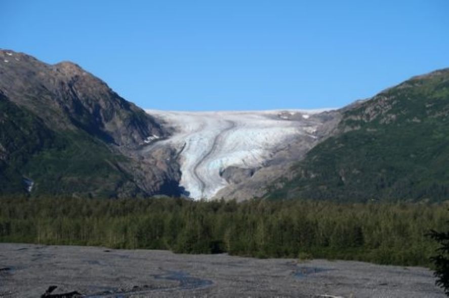 Nous nous mettons en route assez tôt ce matin pour aller faire le trail de 'l'Exit Glacier, qui va s'avérer assez difficile pour nos vieilles articulations. Nous allons marcher durant deux bonnes heures pour arriver au Meadow point avec une vue pas très nette sur le glacier mais nous n'avons pas le courage de faire le dernier kilomètre et demi qui monte encore très raide. Il nous faudra autant de temps pour redescendre car c'est pentu et glissant sur les rochers. Nous repartons du parking pour nous rendre sur un autre point de vue sur le glacier et espérons pouvoir y déjeuner. A peine arrêtés, nous avons la visite d'un voyageur qui serpente l'Alaska depuis une trentaine d'années. Nous allons échanger durant une bonne demie heure, c'est un photographe professionnel, qui vie en Finlande une bonne partie de l'année et l'autre ici en Alaska. Echange de carte et au plaisir de se revoir en Finlande qui est une destination au programme de nos voyages.