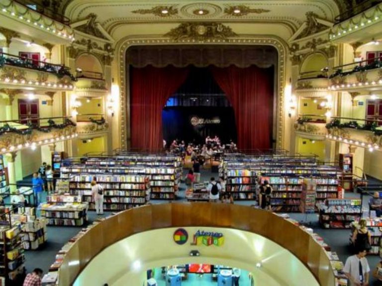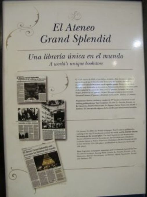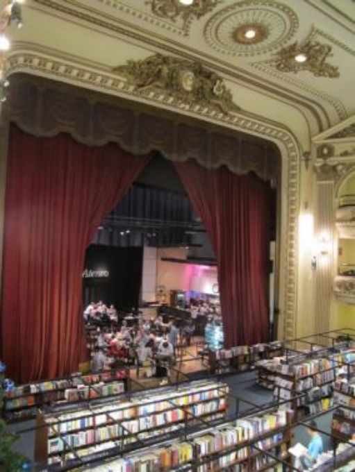 Il y a un monde fou partout, certaines rues sont barrées et impossible de passer, le service de sécurité étant très strict. Tant bien que mal nous finirons par arriver et effectivement nous nous trouvons devant un bâtiment assez particulier de par sa construction puis nous nous rendons à la librairie Avenida de Santa Fe 1860. Cette librairie est en lieu et place d'un théâtre et est remarquable, d'une grande beauté, c'est la première fois que nous voyons cela.