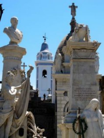 Nous y arrivons assez vite et partons visiter le cimetière qui est un des plus beaux d'Argentine mais aussi celui qui à les plus grands personnages d'Argentine qui reposent en son sein. Ce lieu fait penser à une petite ville en miniature tant les caveaux sont grands. De très nombreux et grands personnages comme les généraux dont toutes les villes leurs ont donné des noms de rue, sont enterrés ici. De grands poètes, des artistes et des anonymes, bien évidemment reposent également ici.