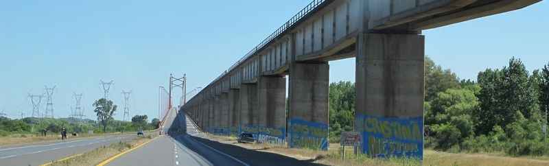 le pont de Zarate qui passe au dessus du Rio Parana, il y a une année nous passions dessous en cargot