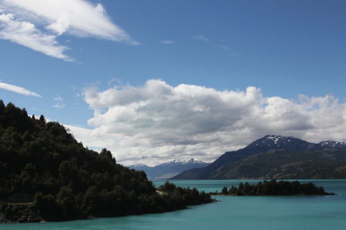 Nous allons faire quelques courses pour les jours à venir car cela risque d’être difficile pour trouver de la nourrirure. Nous prenons la route vers 11h30 toujours en direction du sud et nous sommes un peu déçu que les paysages ne soient pas de la même teneur que ceux rencontrés la veille, de plus la route est goudronnée sur plus de 100km après Coyhaique, mais tout recommence au niveau de Cerro castillo où nous apercevons les montagnes enneigées. Ensuite la piste reprend le dessus et redevient très intéressante et belle avec des paysages complètements différents que ceux auxquels nous avons eu droit depuis Caleta Gonzalo, ici c'est haute montagne. L'arrivée aux abords du Lago Carrera est fabuleuse, ce site est vraiment magnifique. Nous trouvons un superbe camping à Puerto Rio Tranquilo et décidons de rester deux nuits et d'aller visiter la "Capilla de Marmol" ou la chapelle de marbre.