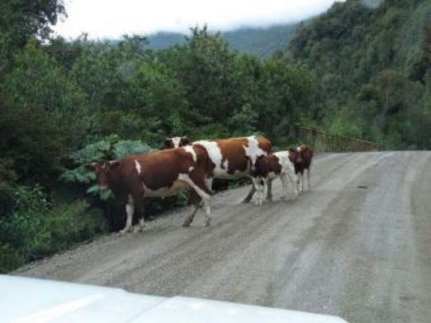 Nous passons à Cochrane vers midi et nous y ferons un stop de deux heures pour faire quelques courses et déjeuner dans Hugo. Le sud de Cochrane nous permet de longer le rio Baker d'un bleu profond, nous n'avons jamais vu de telles couleurs même dans l'ouest canadien, c'est peu dire. La piste devient un peu cassante vers la fin et c'est à 17h00 que nous arriverons sur Tortel.